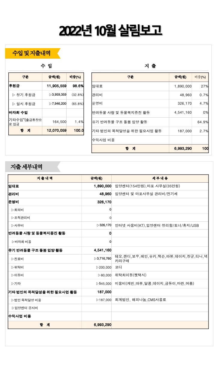 2022년 10월 살림보고 및 회계(통장내역)