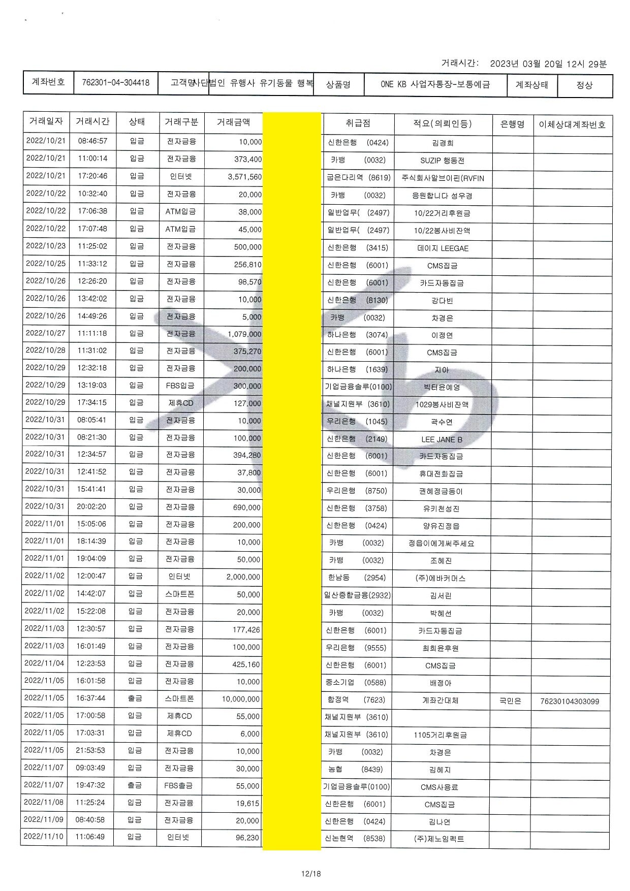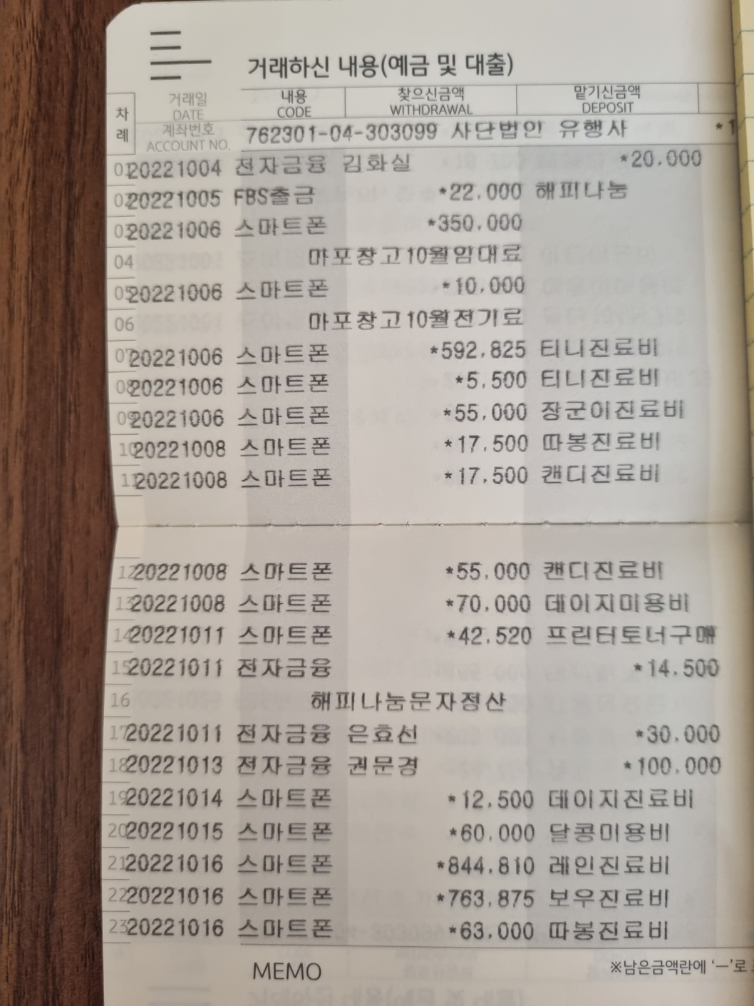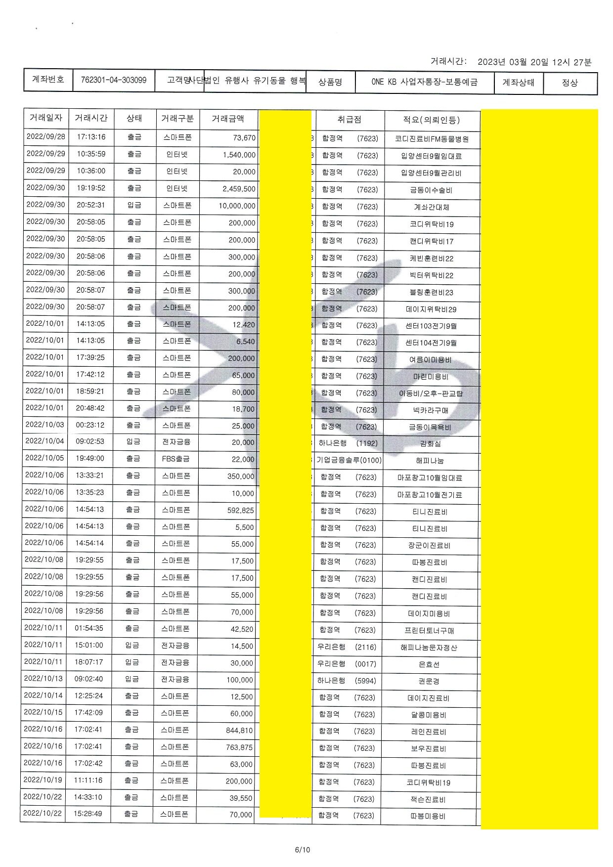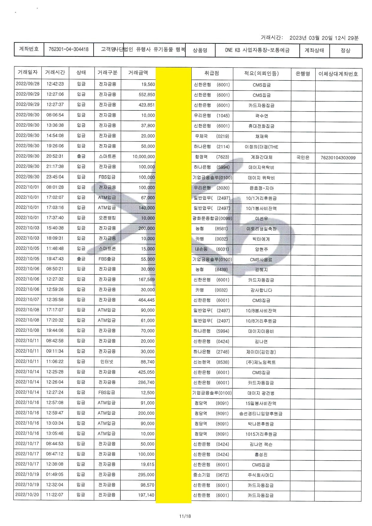 2022.10 통장거래내역 - 303099