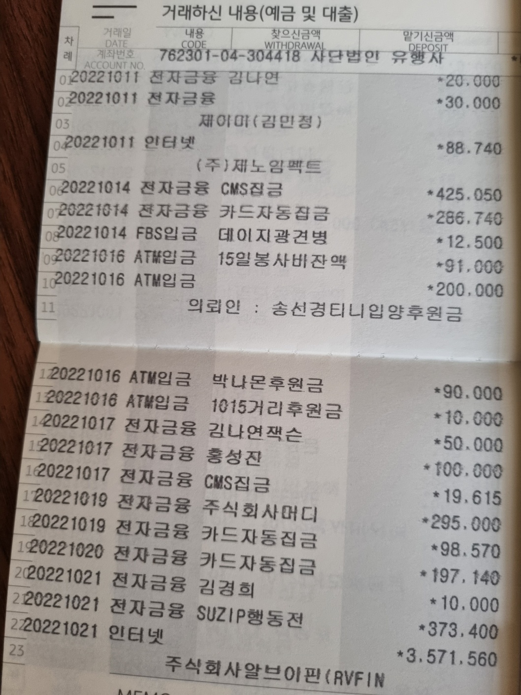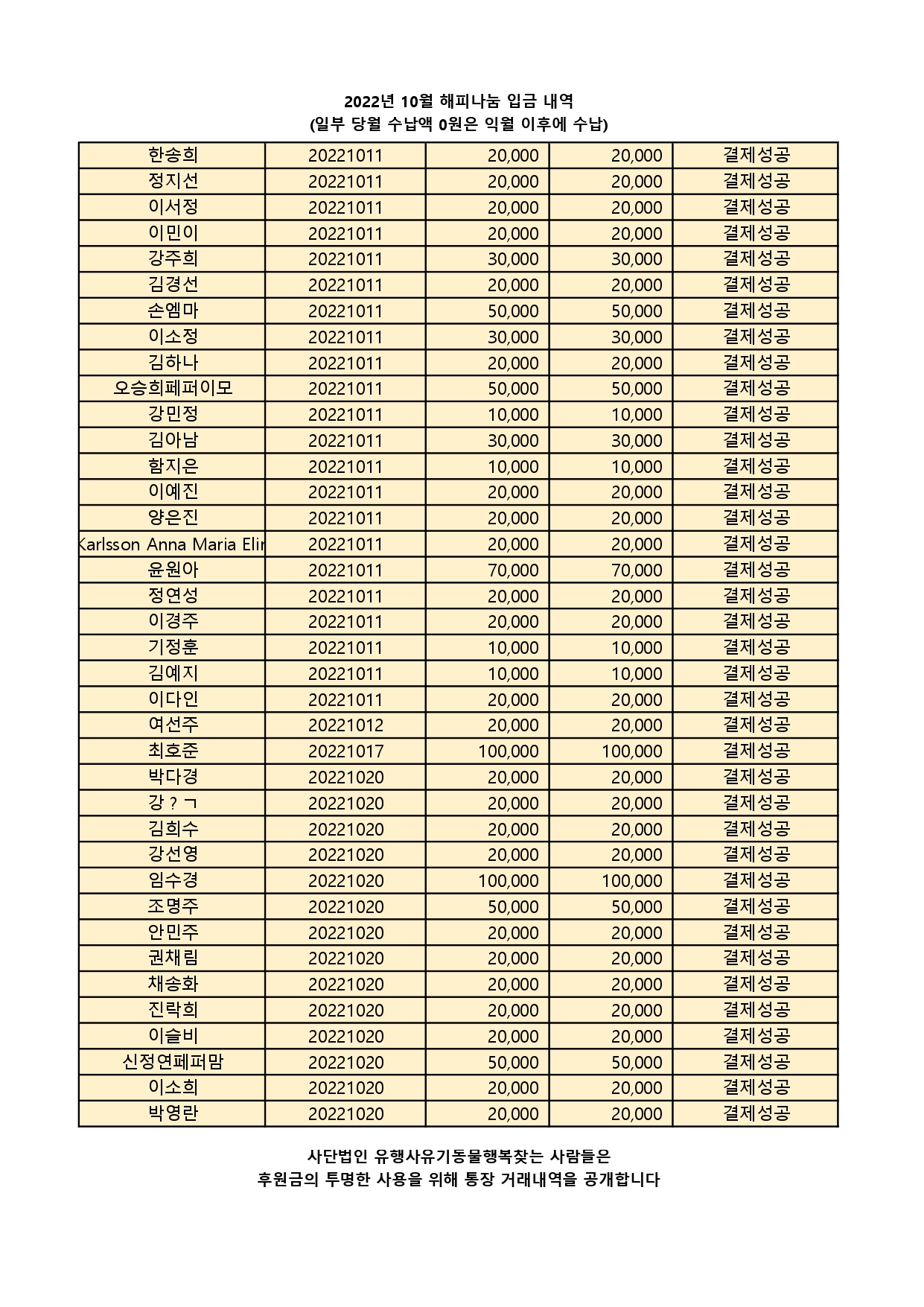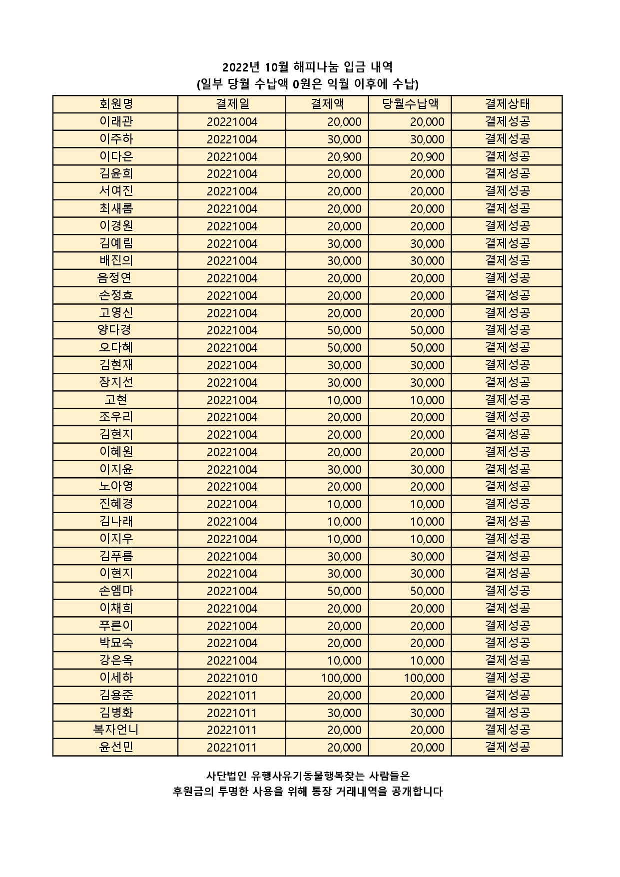 2022.10 해피나눔 입금내역