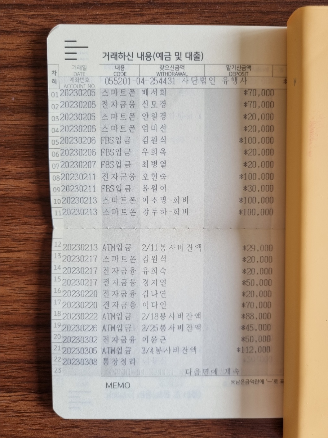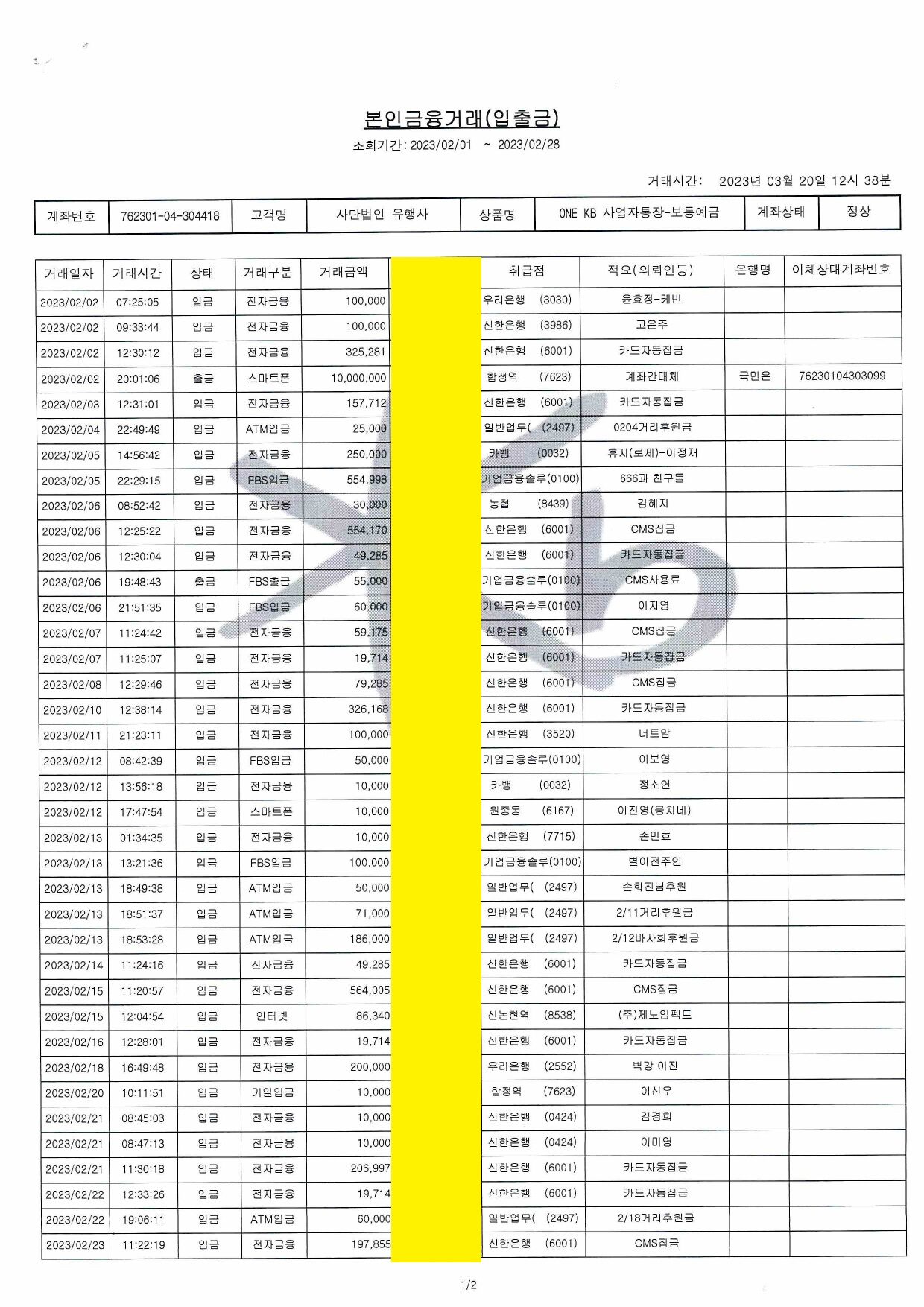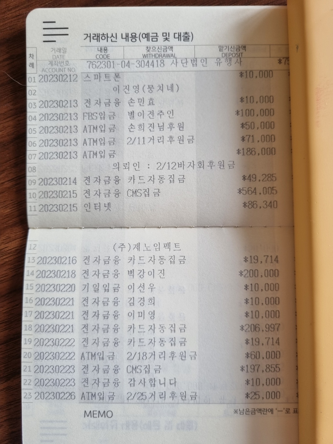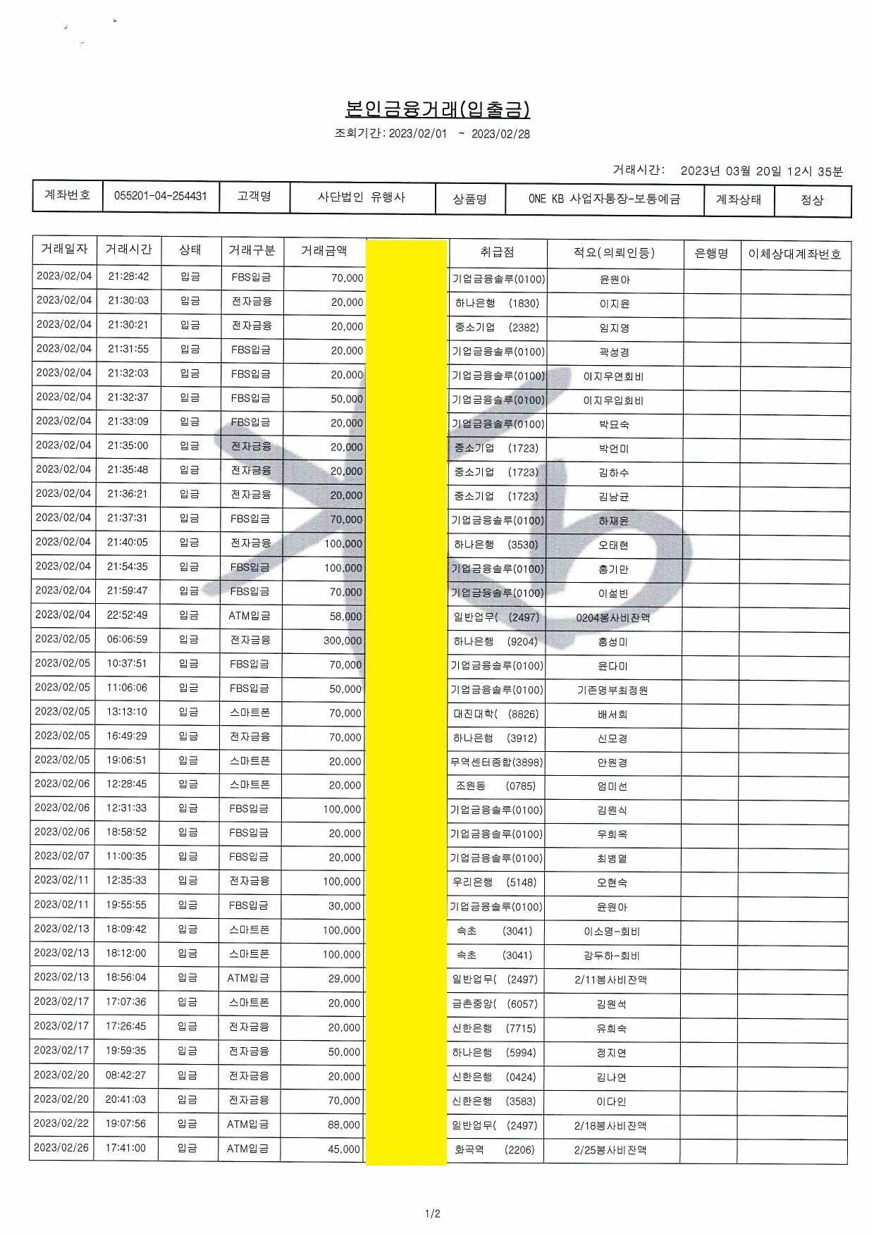 2023.02 해피나눔 입금내역 : 일부 당월수납 = 0은 익월 이후 수납됩니다.
