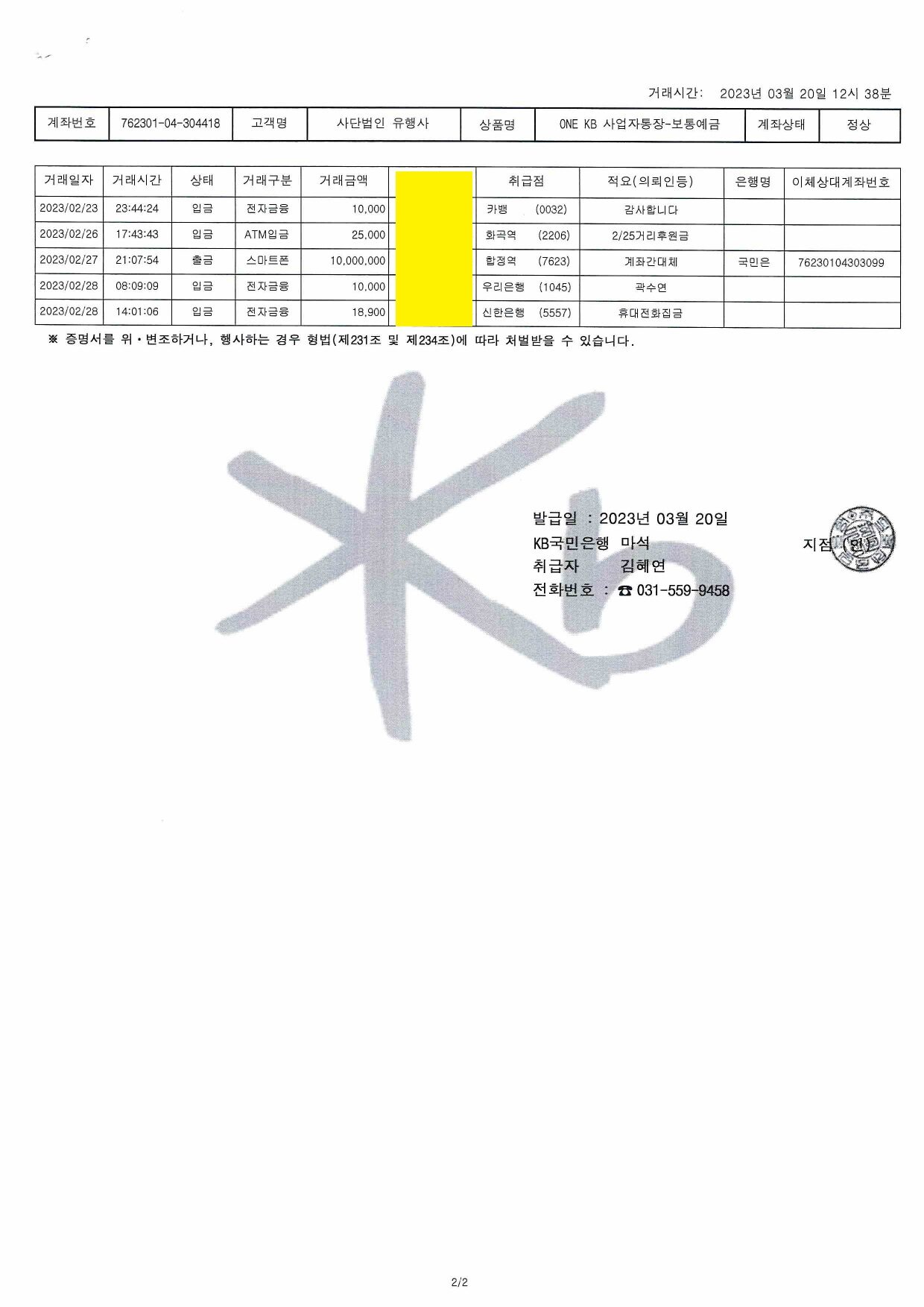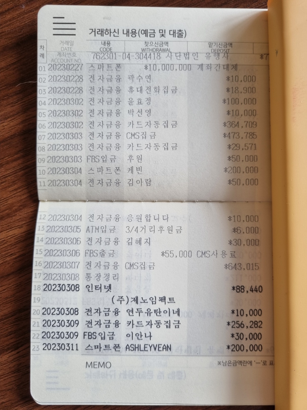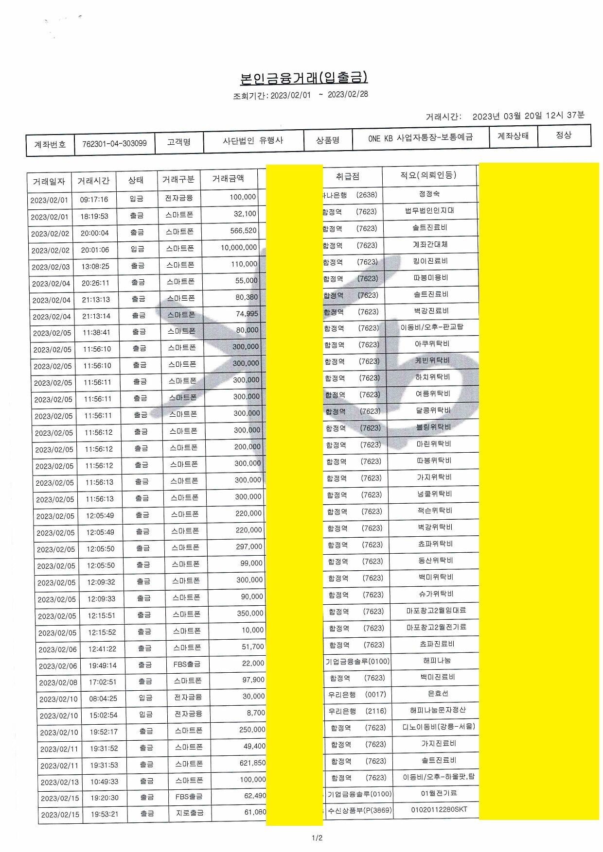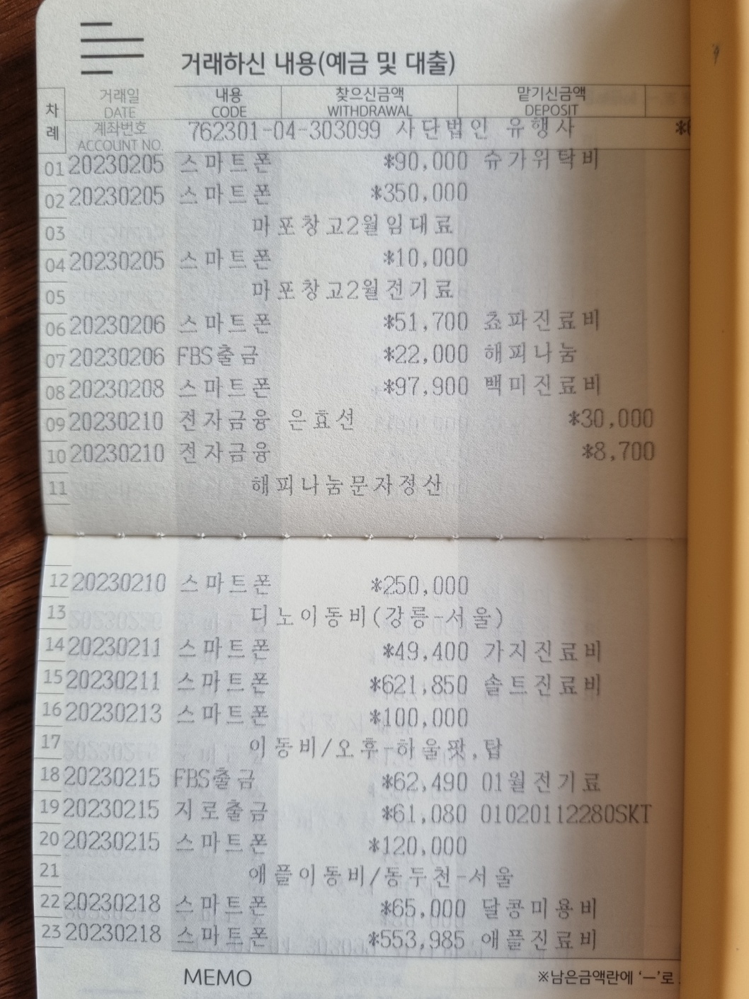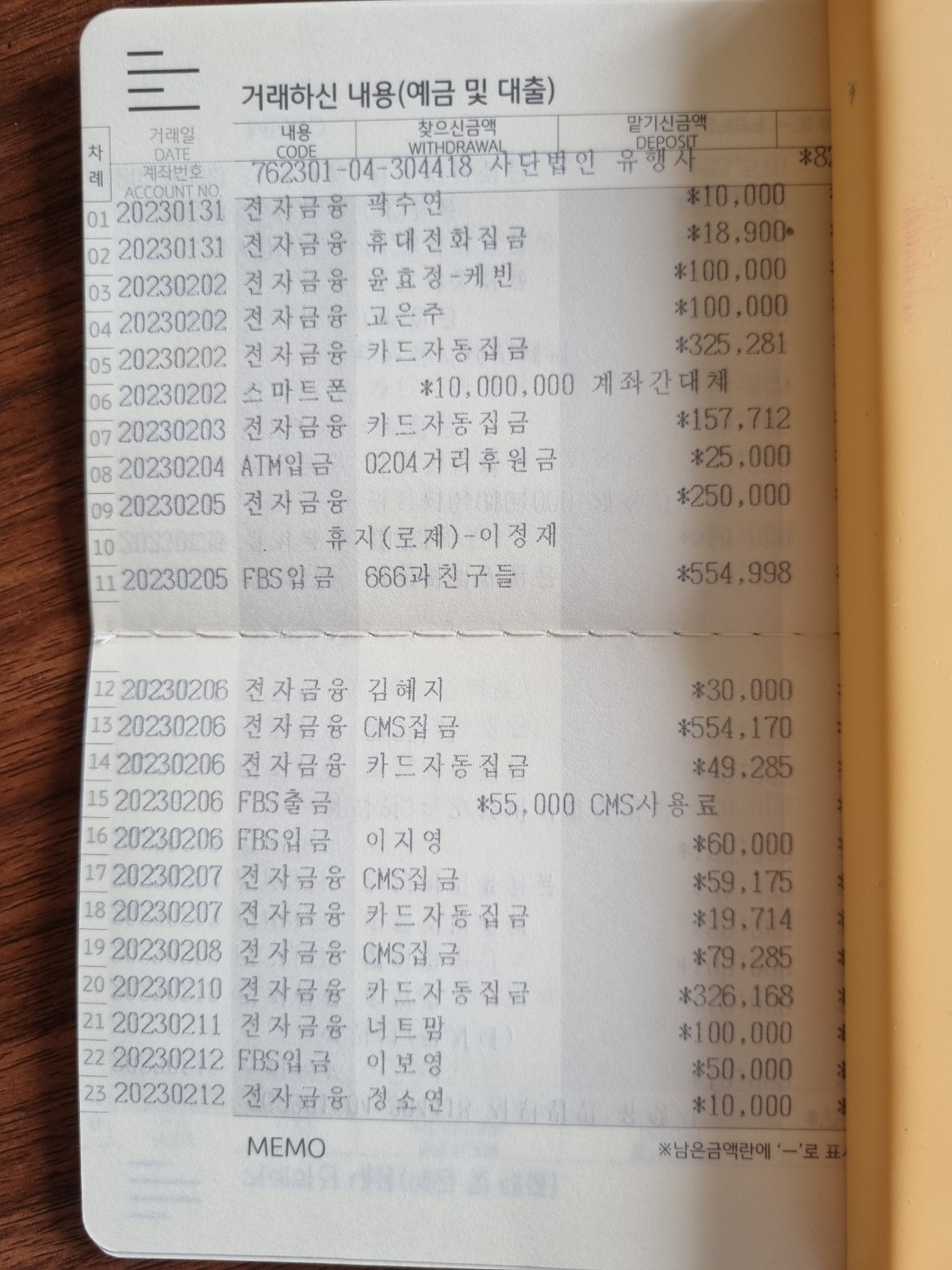 2023.02 해피나눔 입금내역 : 일부 당월수납 = 0은 익월 이후 수납됩니다.