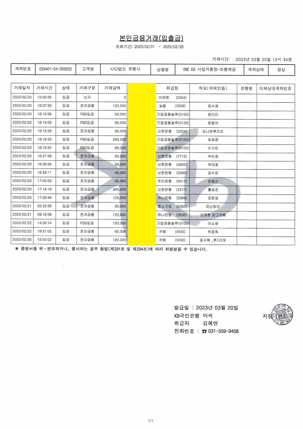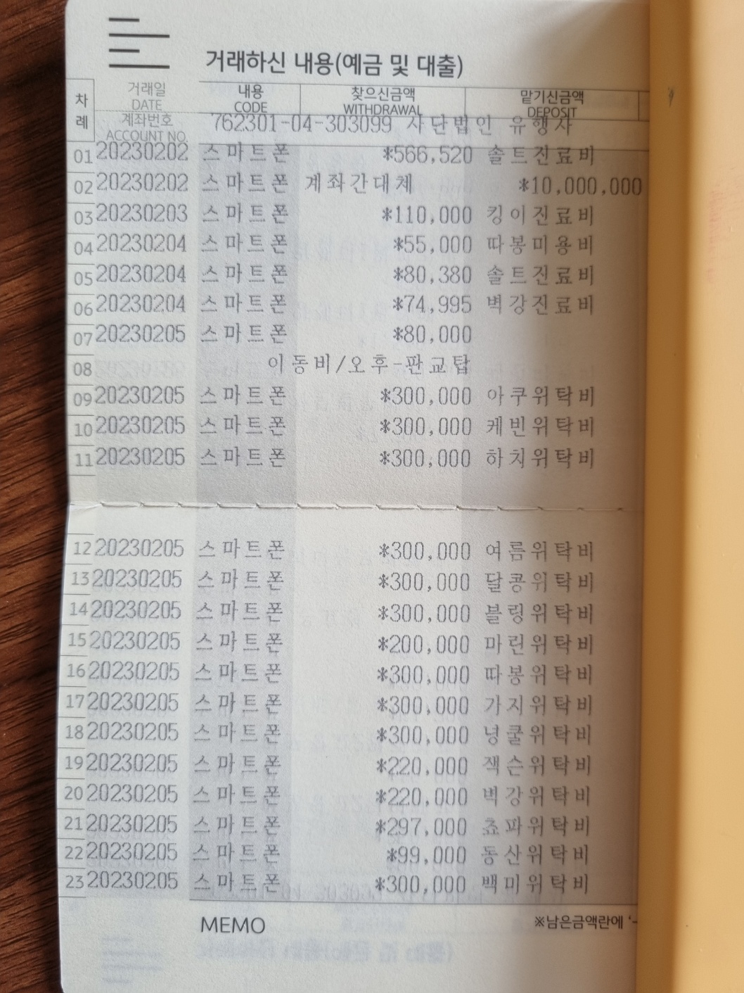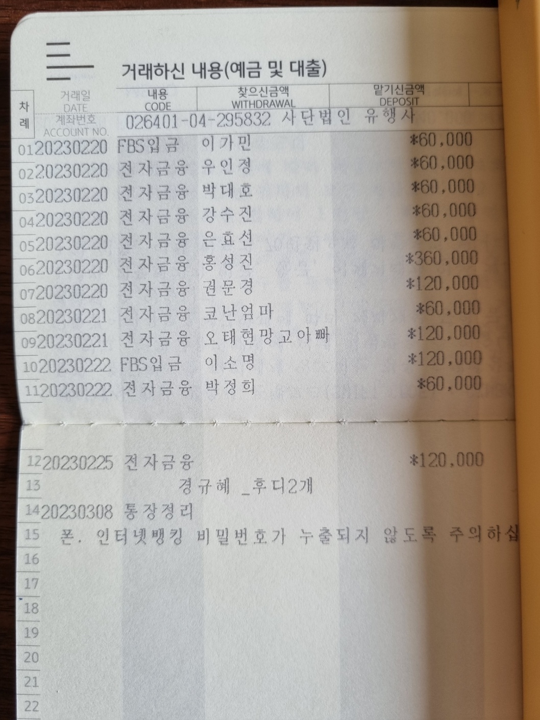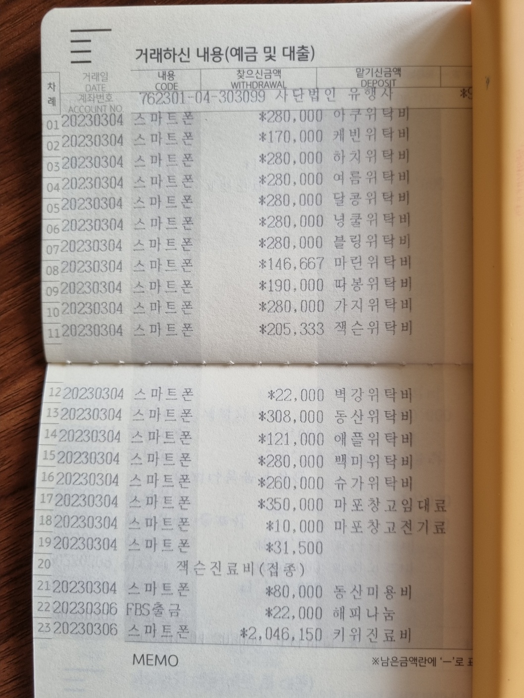 2023.02 해피나눔 입금내역 : 일부 당월수납 = 0은 익월 이후 수납됩니다.