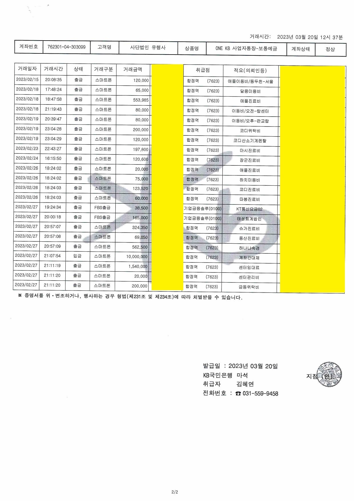 2025년 2월 살림보고 및 회계 (통장 내역)