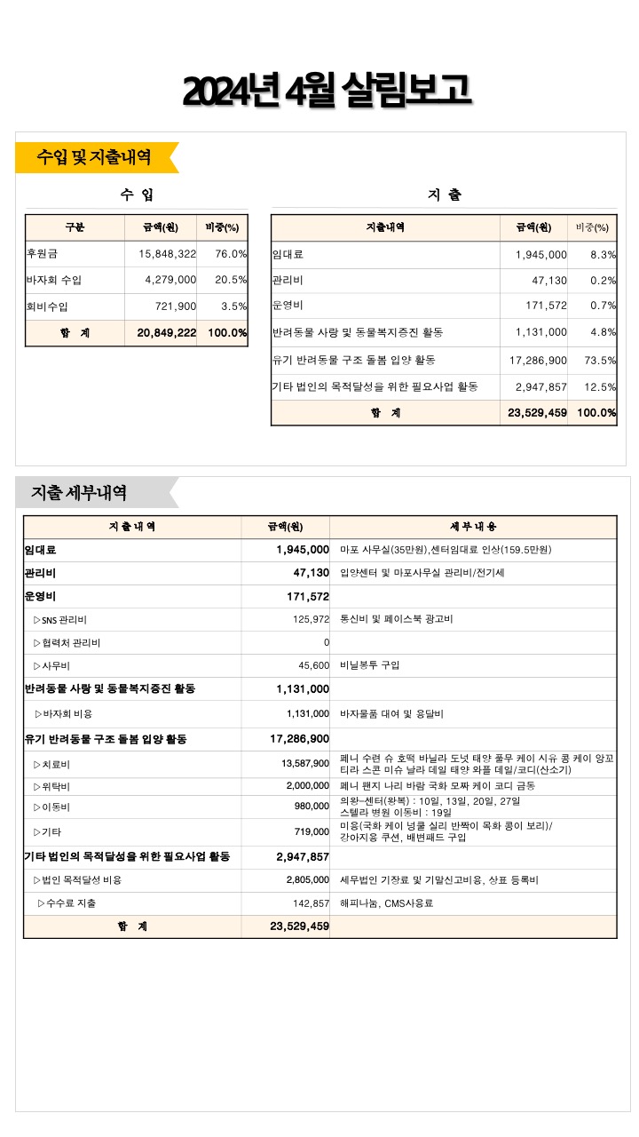 2024년 4월 살림보고 및 회계 (통장내역)
