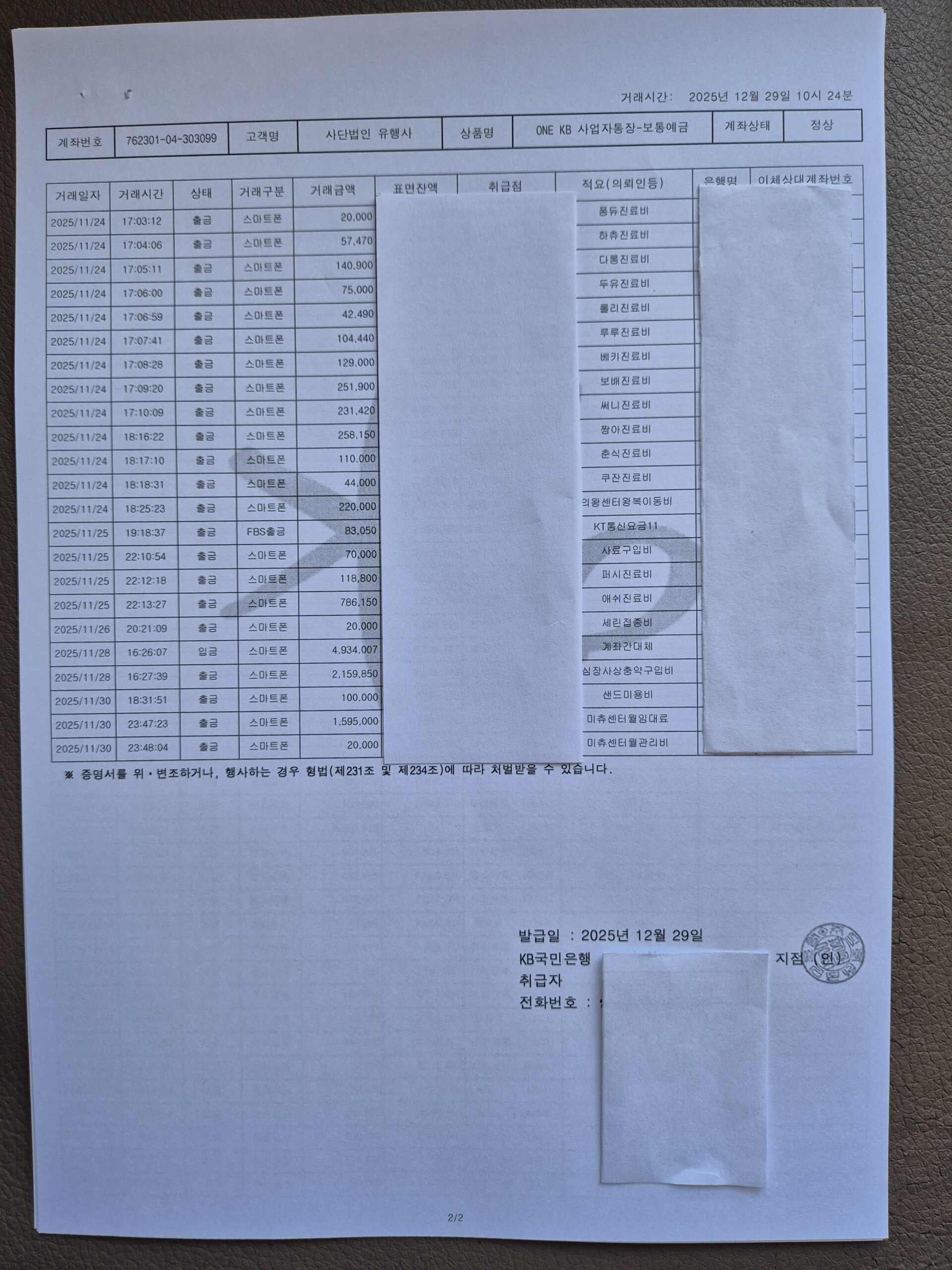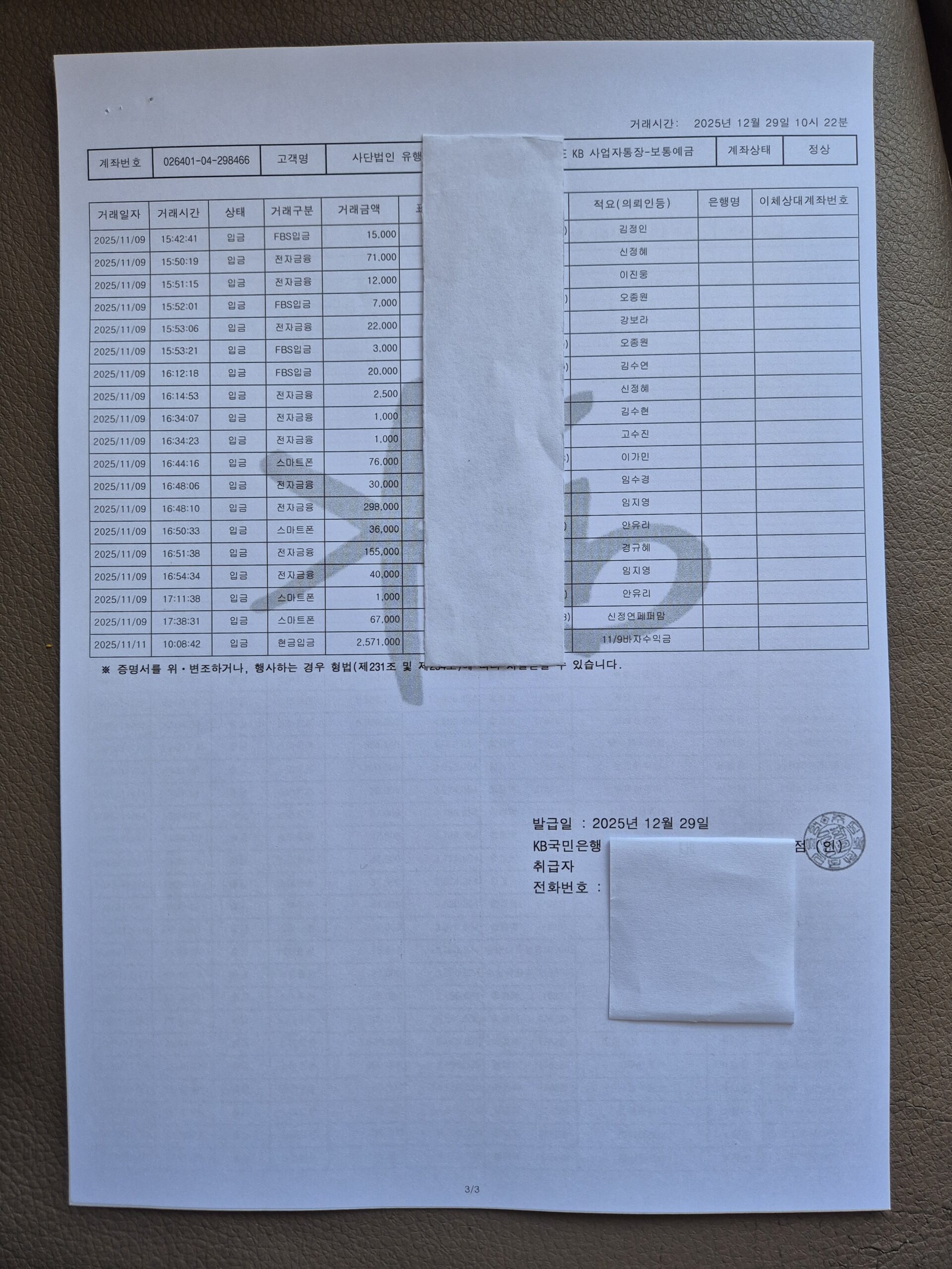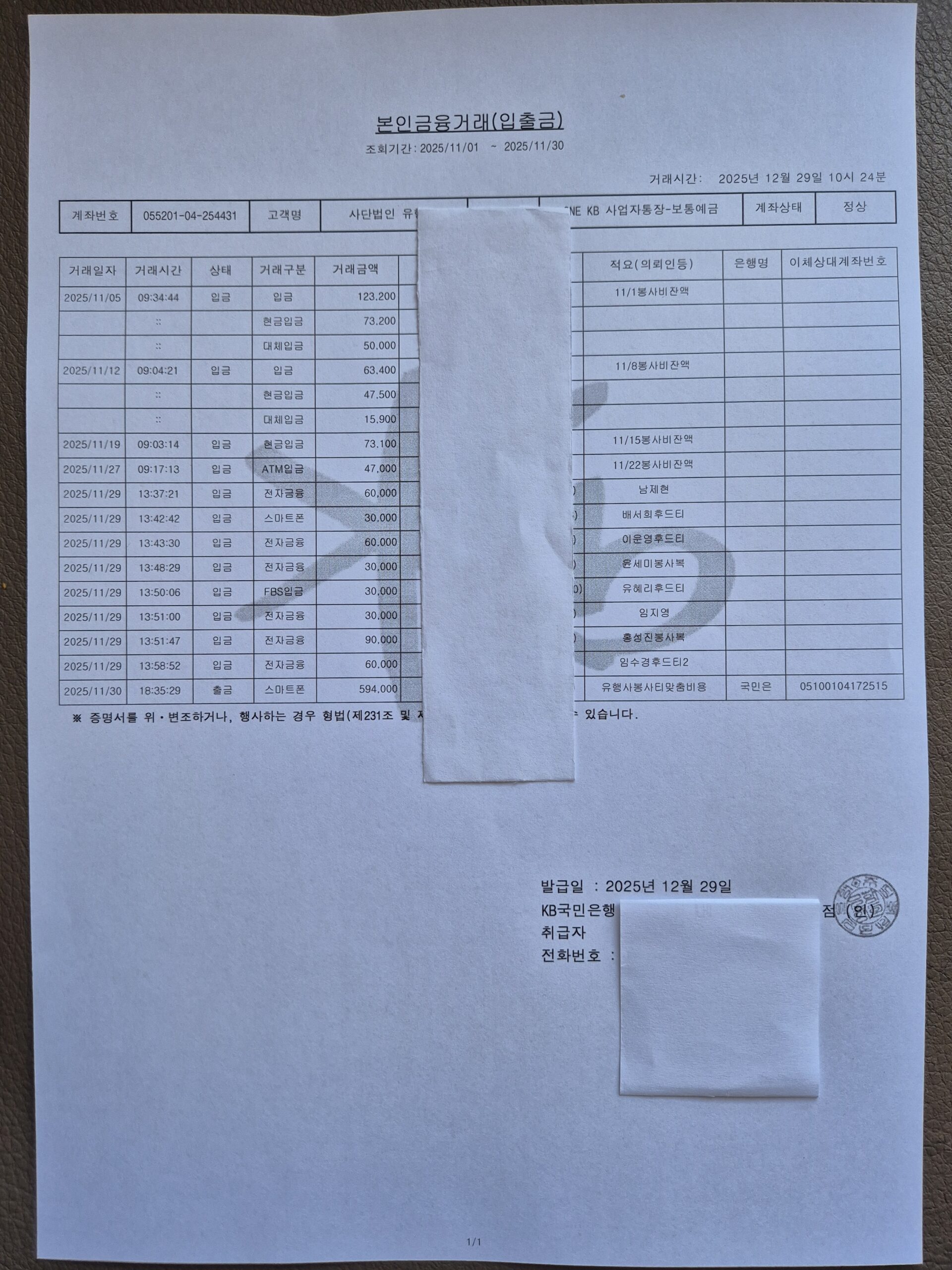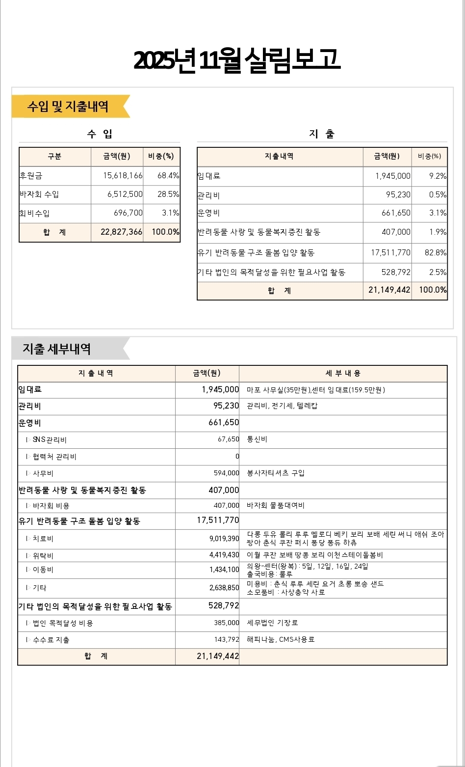 2025년 11월 살림보고 및 회계 (통장내역)