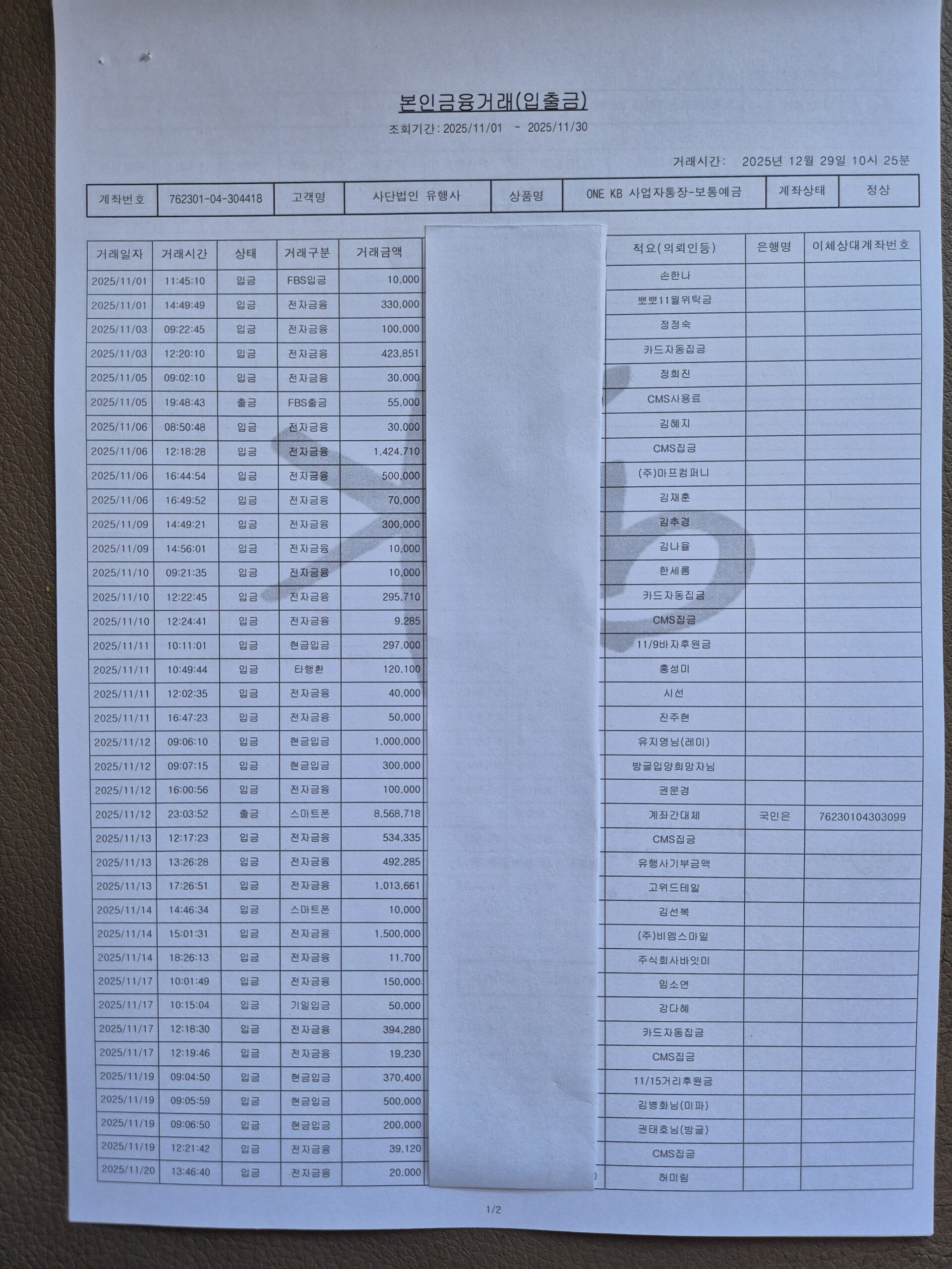 2025.11 통장거래내역 - 304418 후원통장
