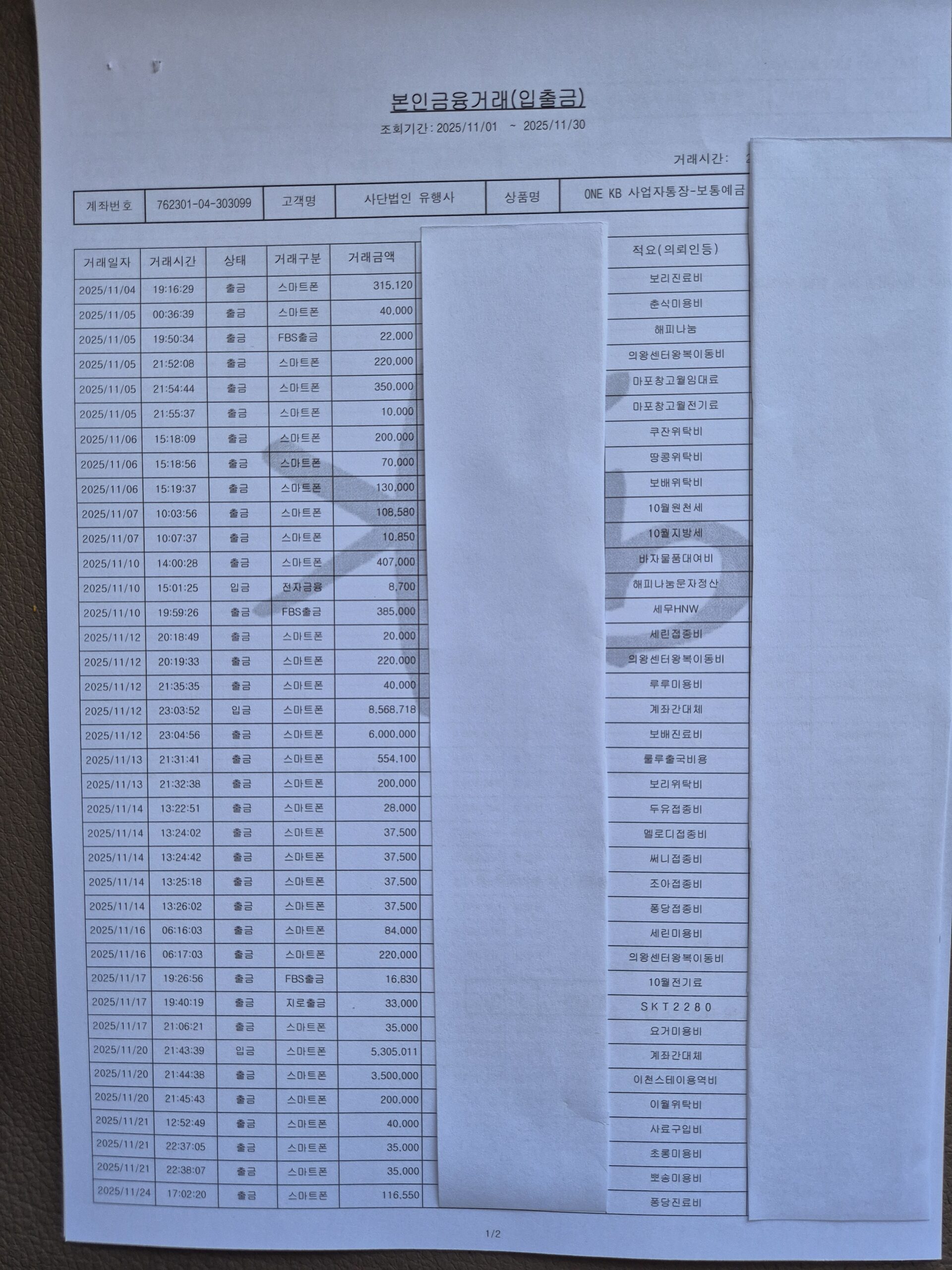2025.11 통장거래내역 - 303099 지출통장