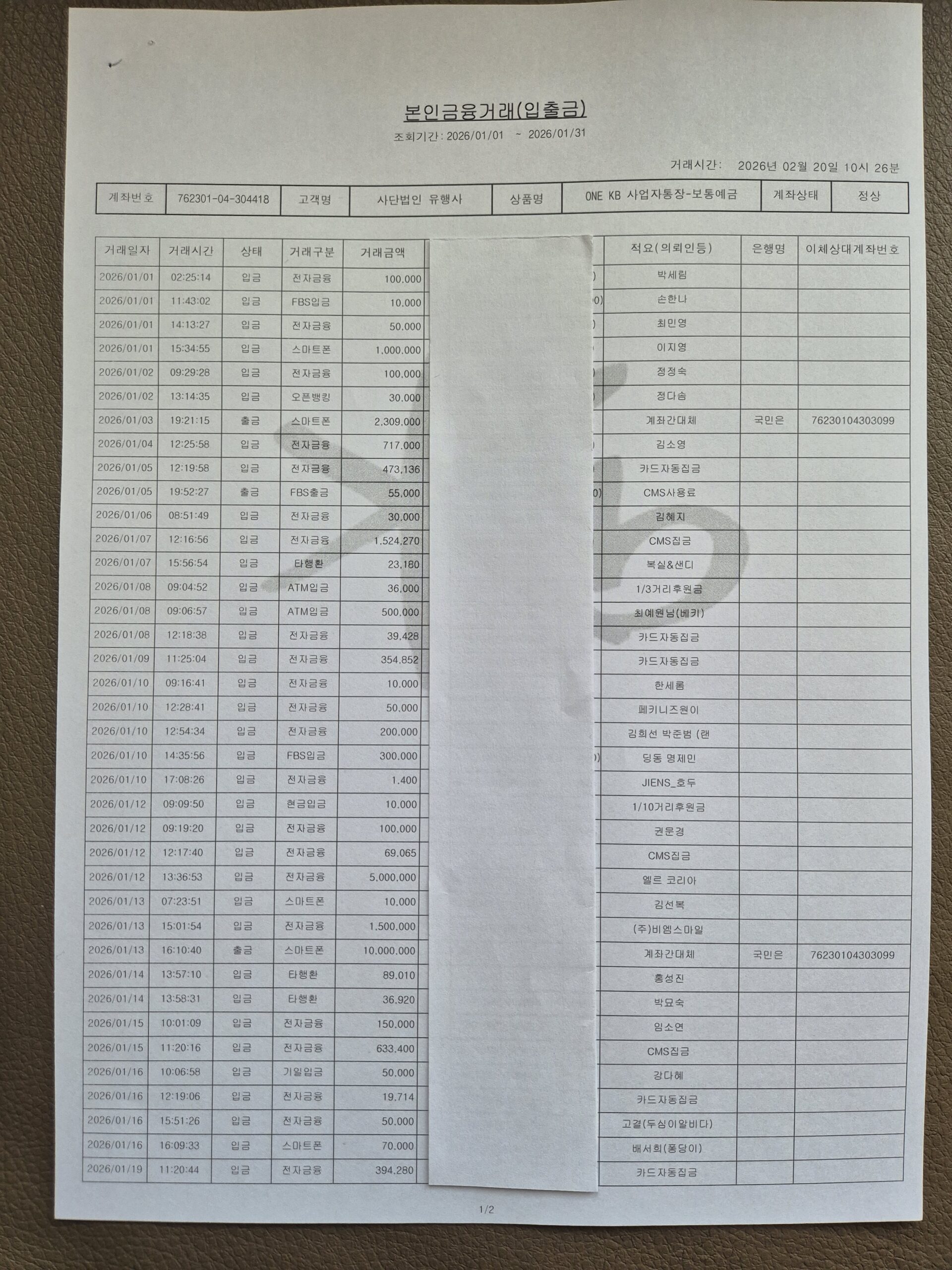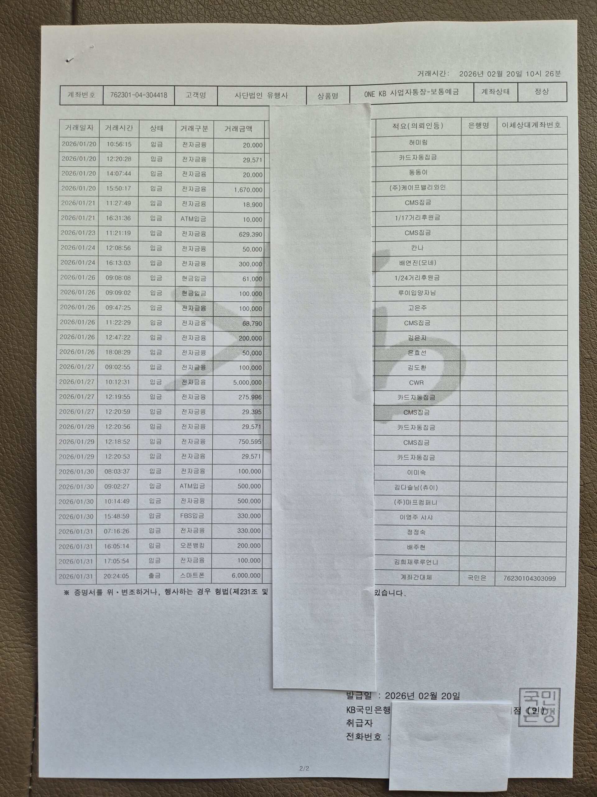 2025년 2월 살림보고 및 회계 (통장 내역)