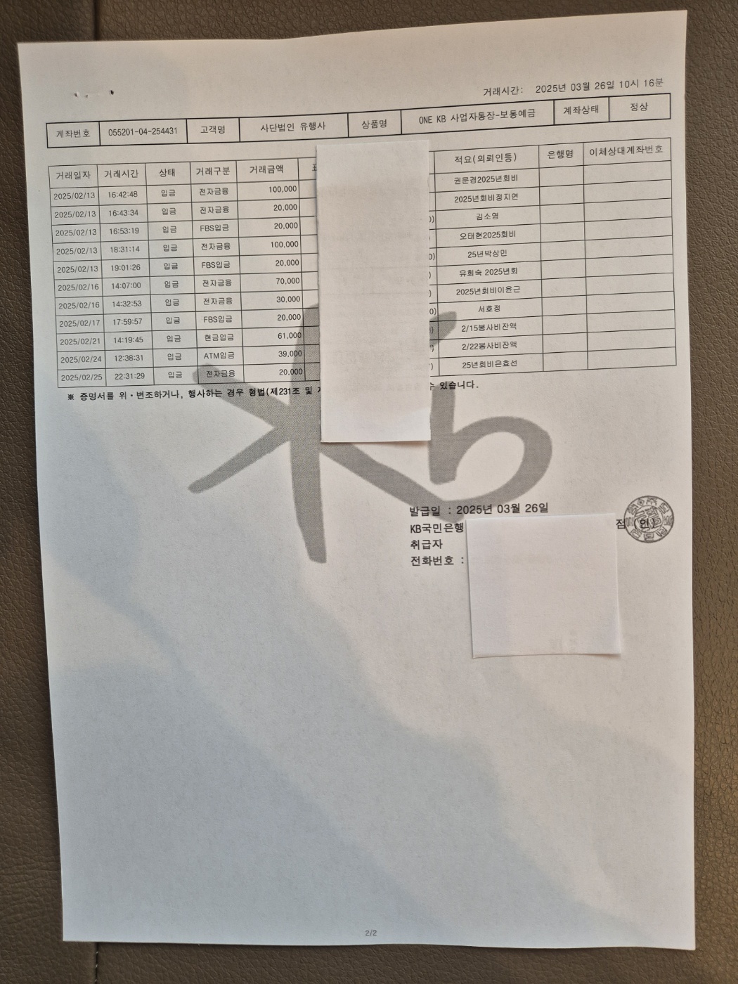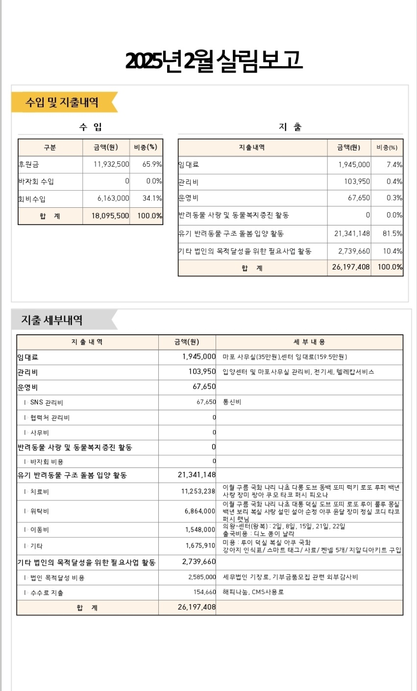 2025년 2월 살림보고 및 회계 (통장 내역)