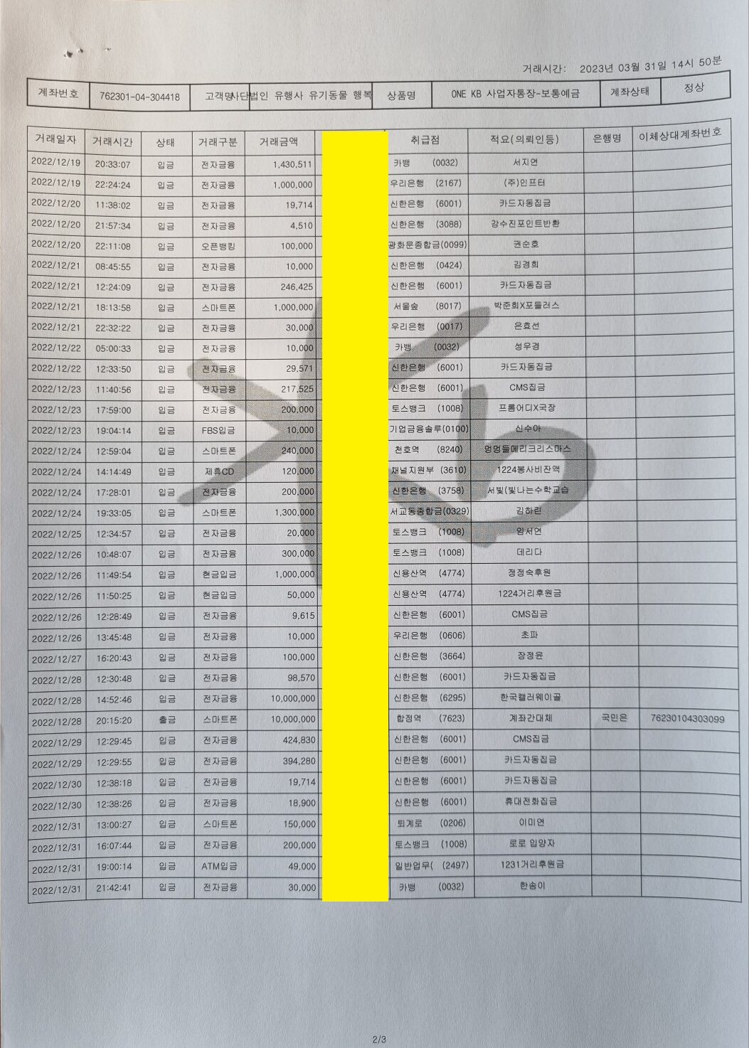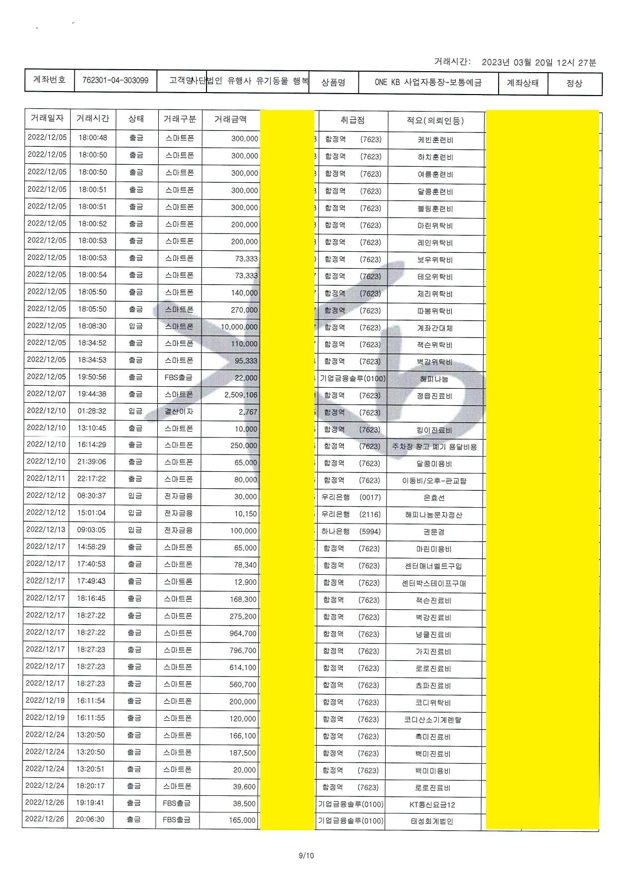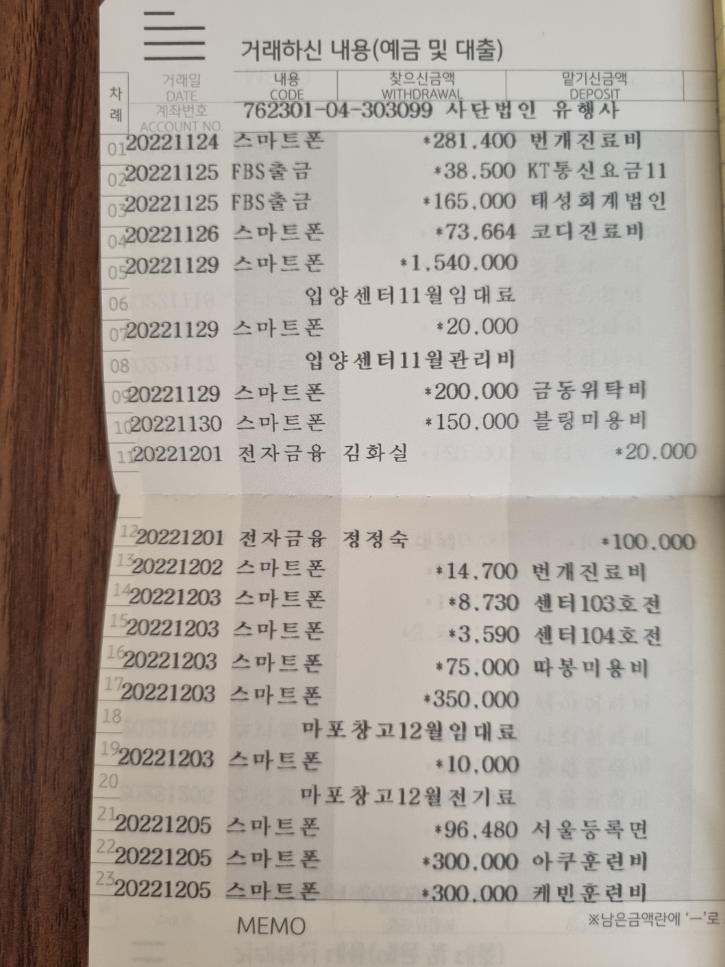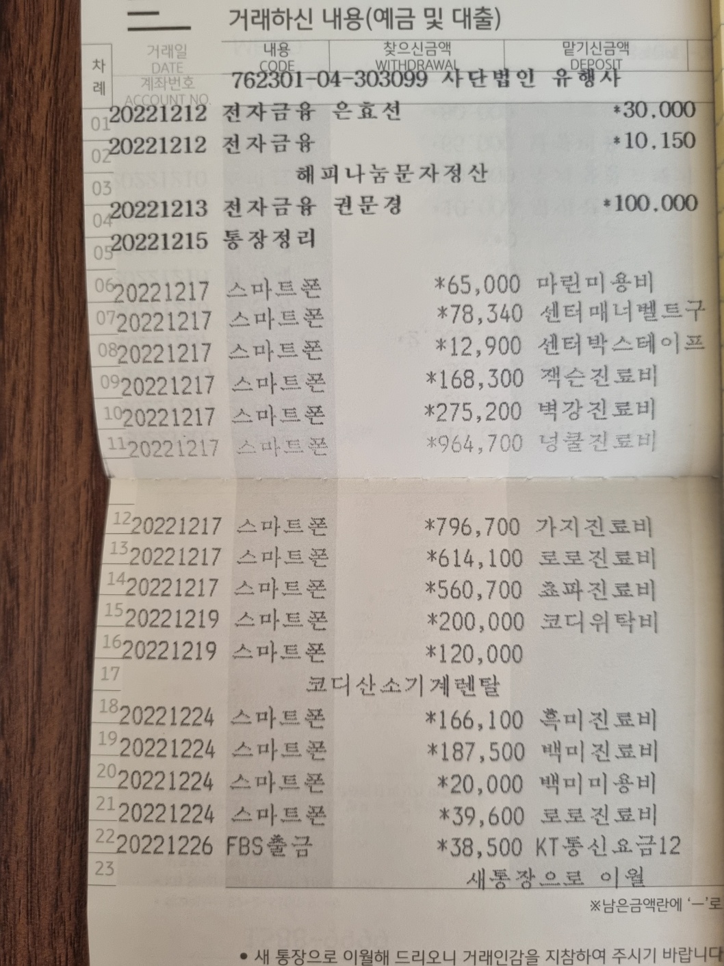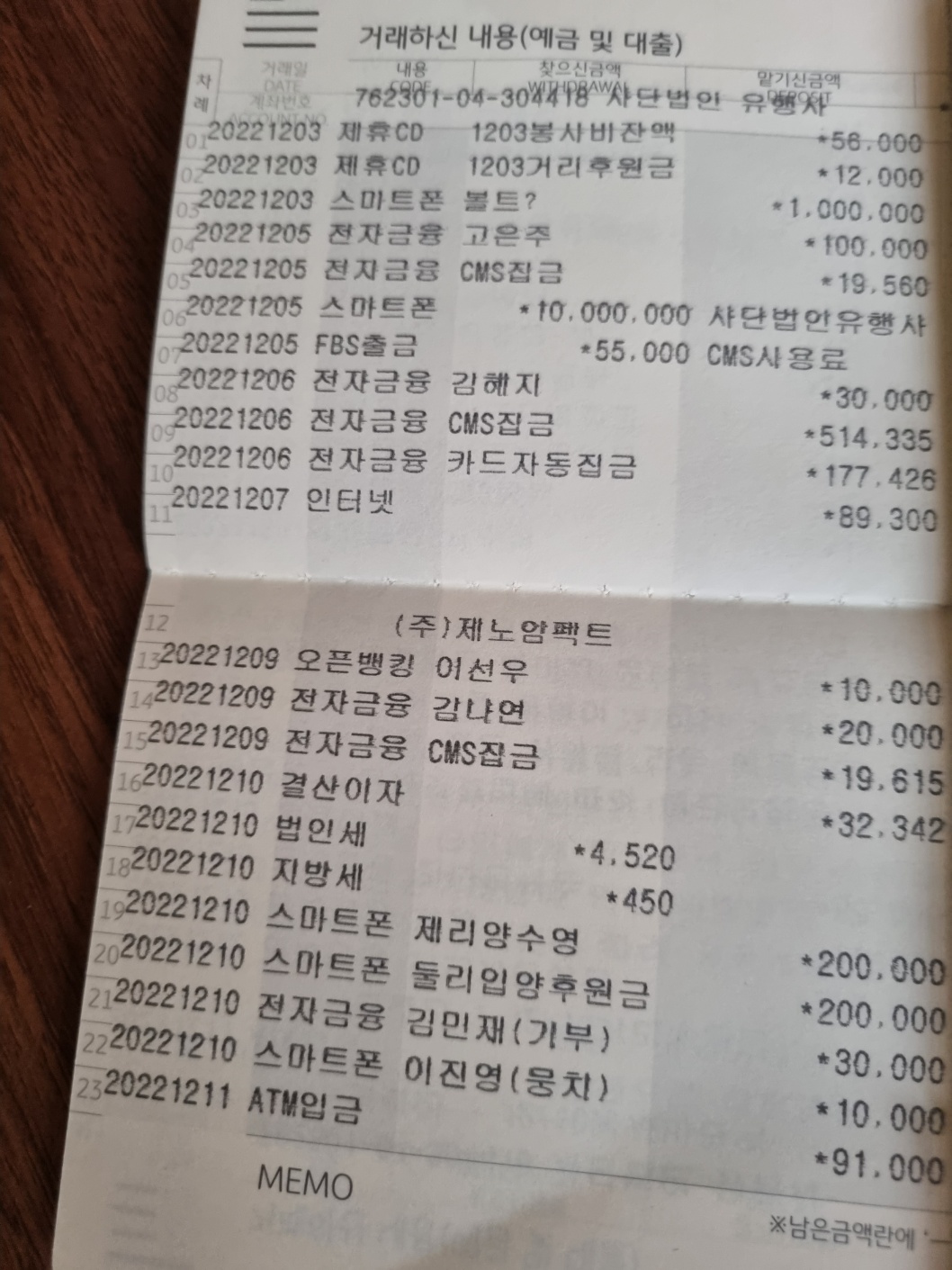 2022.12 해피나눔 입금내역 : 일부 당월수납 = 0은 익월 이후 수납됩니다.