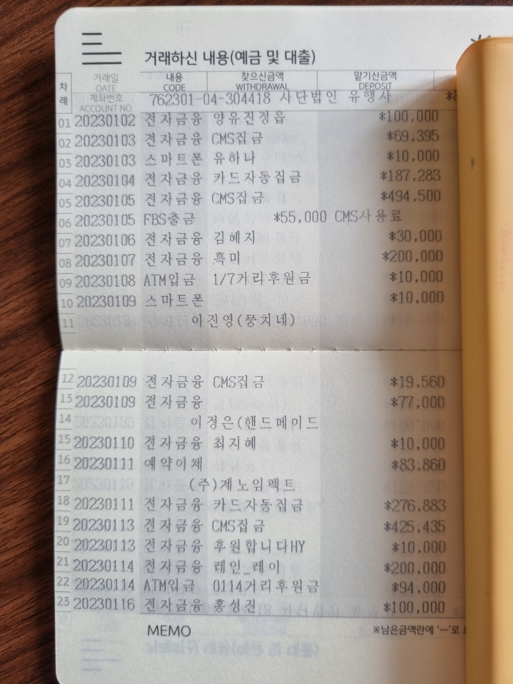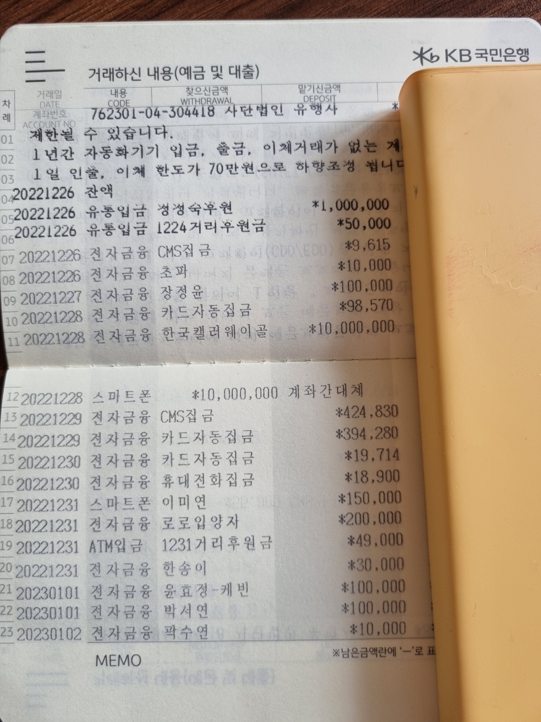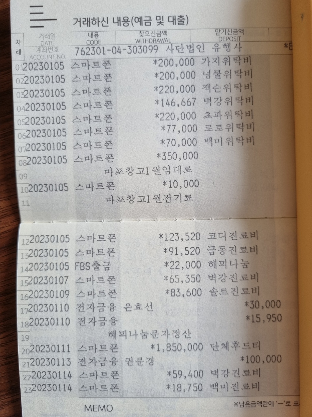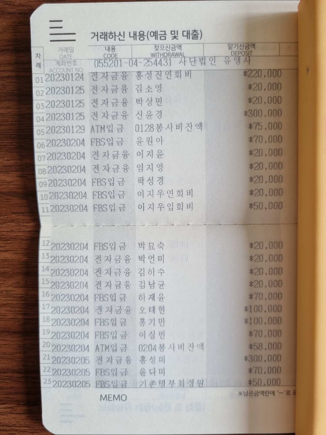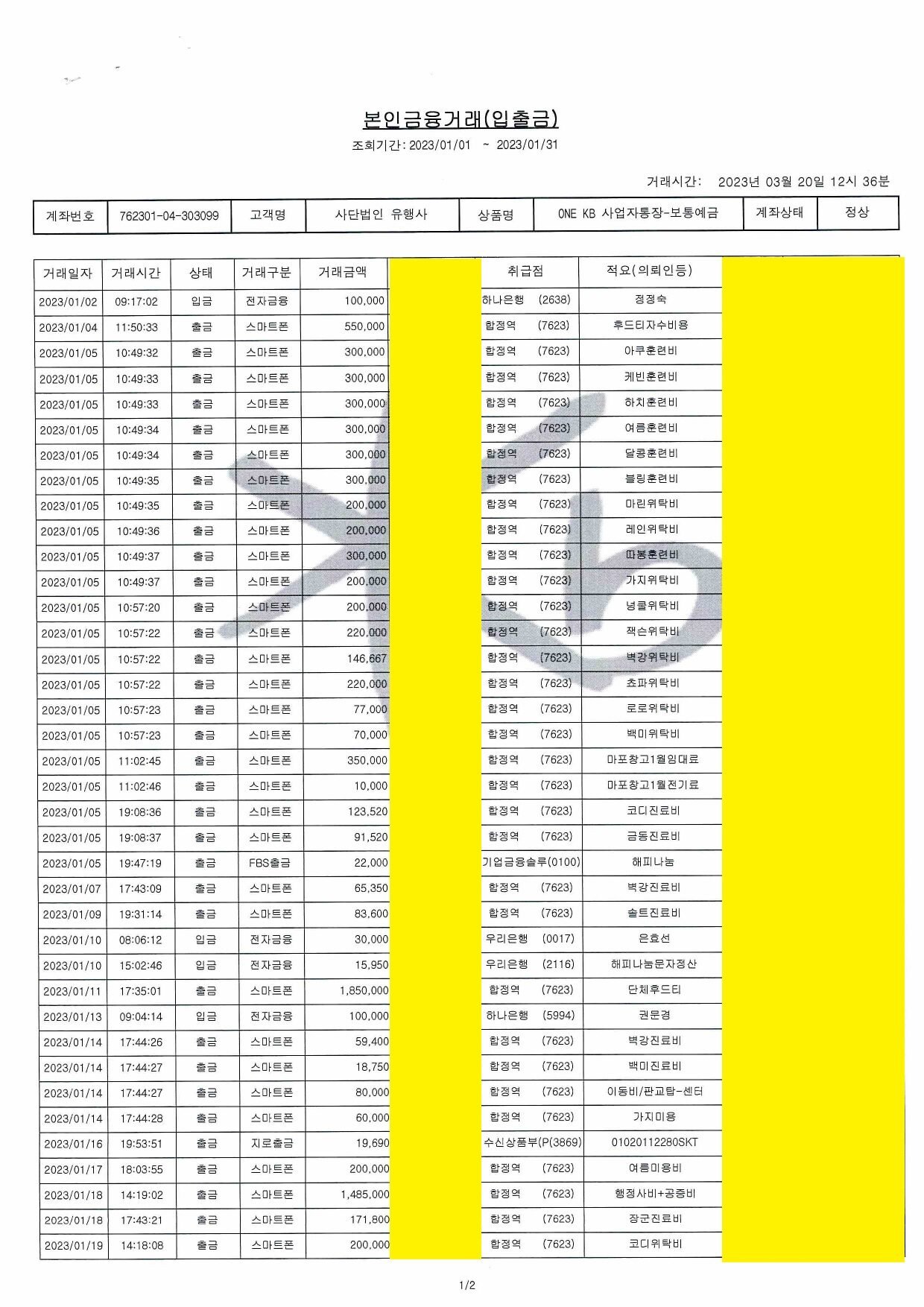 2023.01 해피나눔 입금내역 : 일부 당월수납 = 0은 익월 이후 수납됩니다.