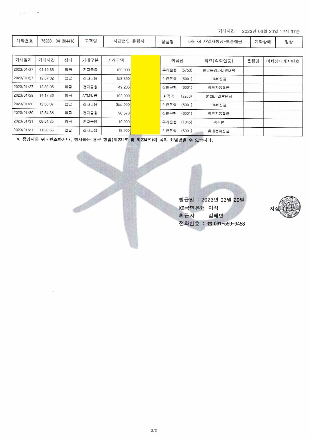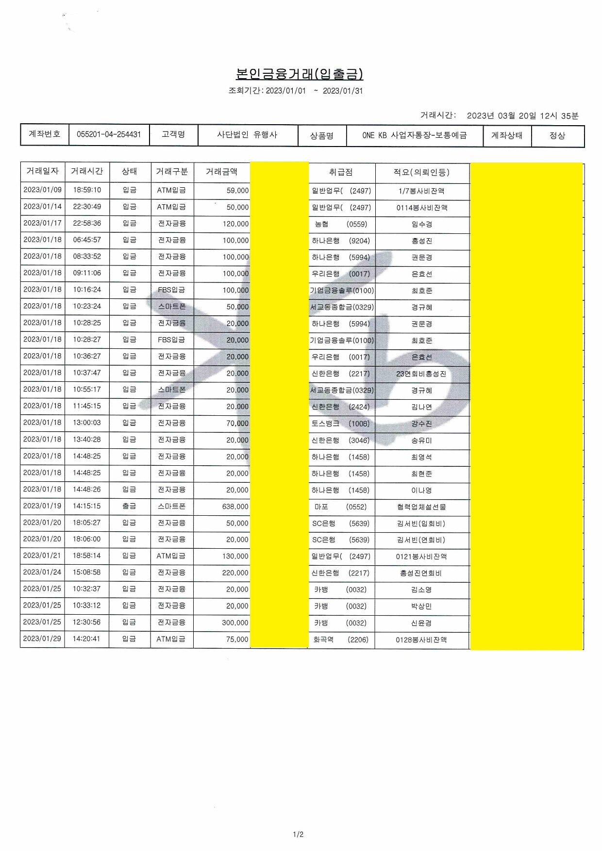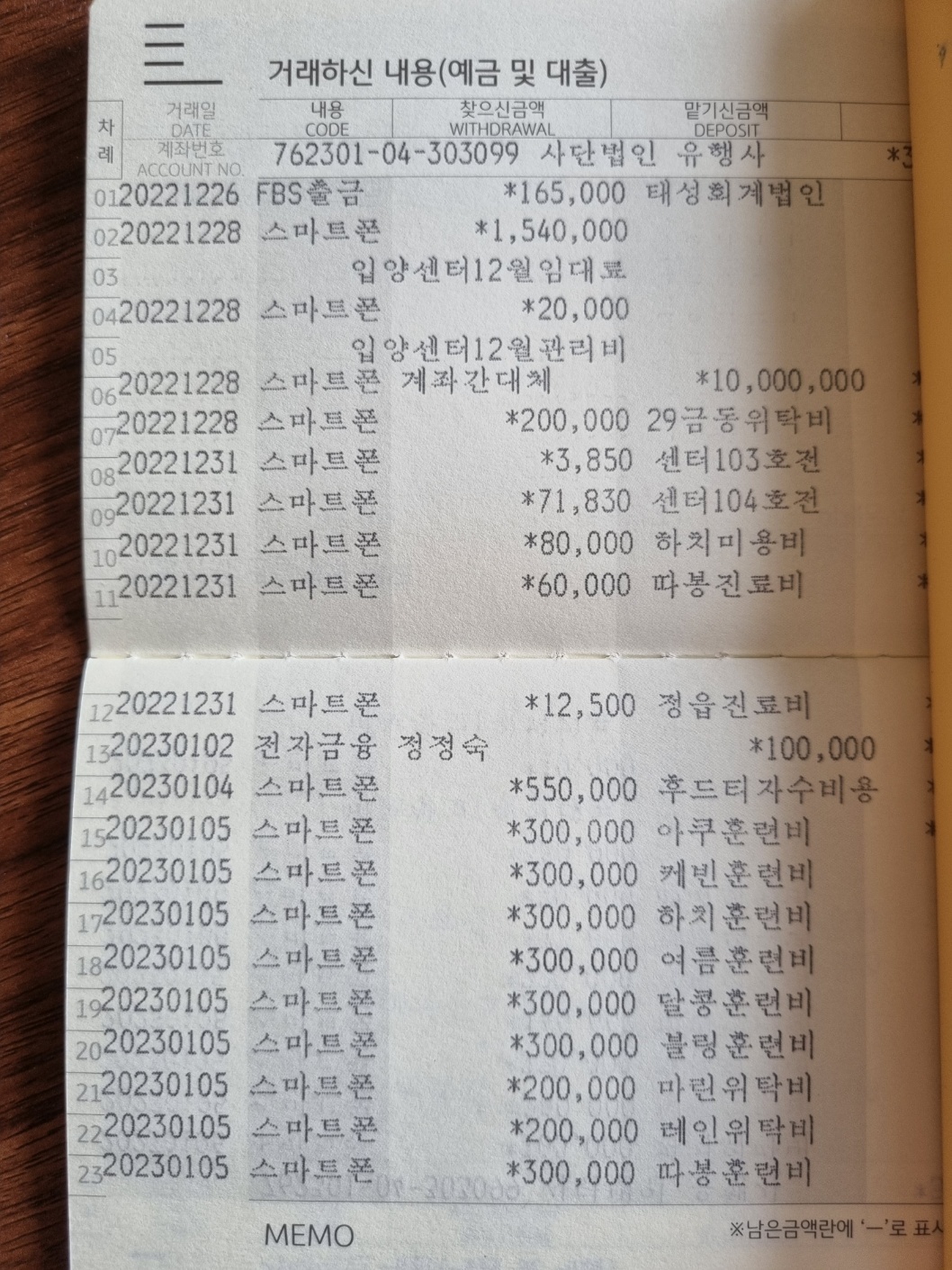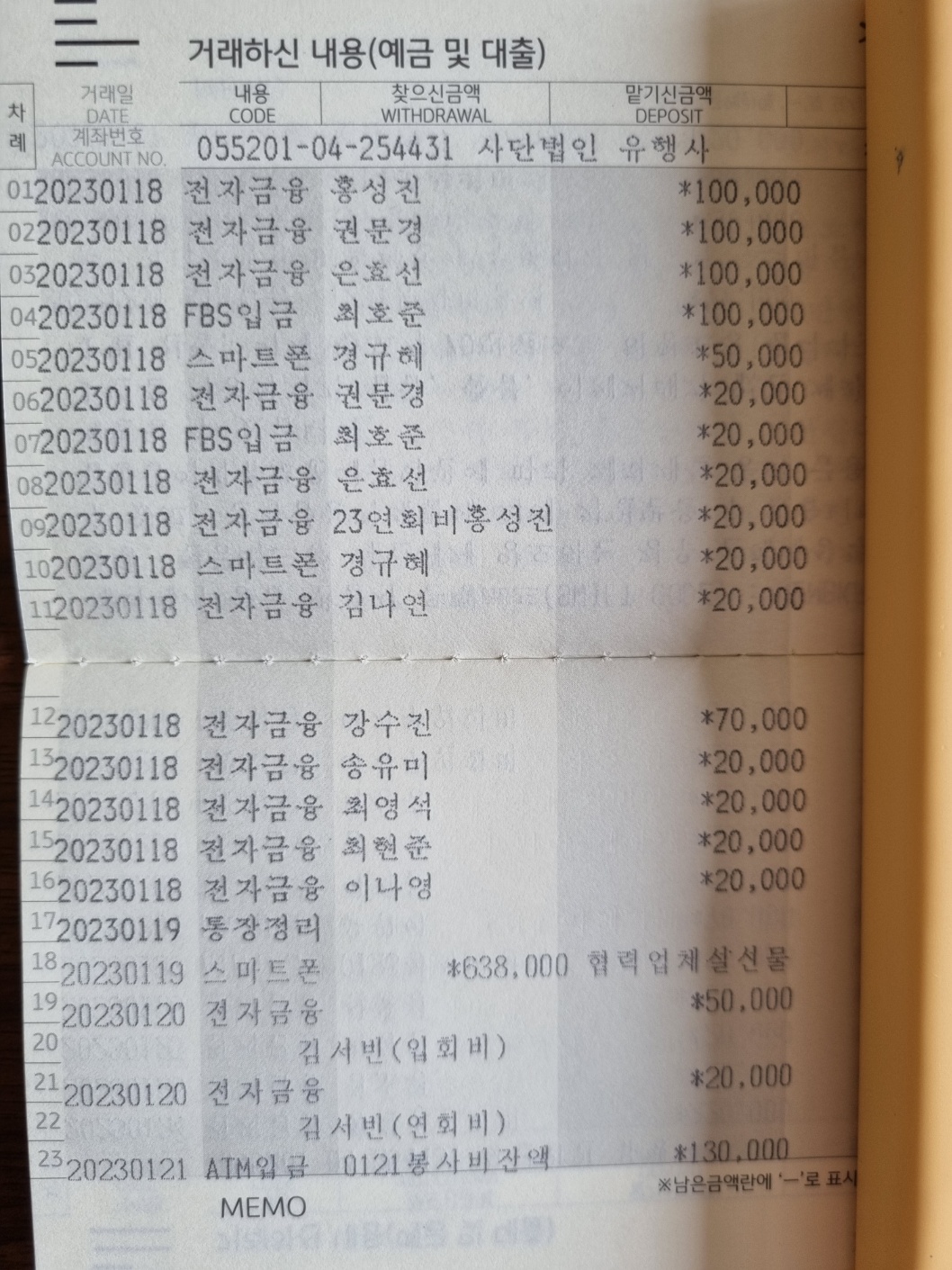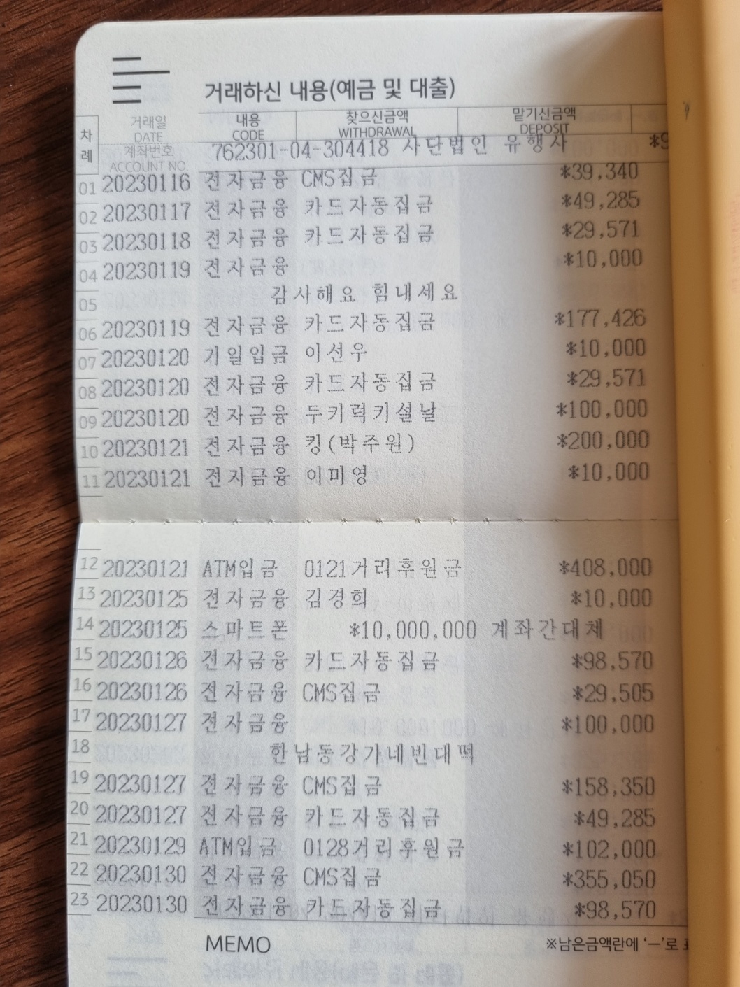 2023.01 해피나눔 입금내역 : 일부 당월수납 = 0은 익월 이후 수납됩니다.