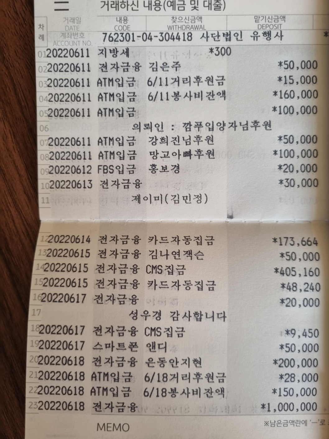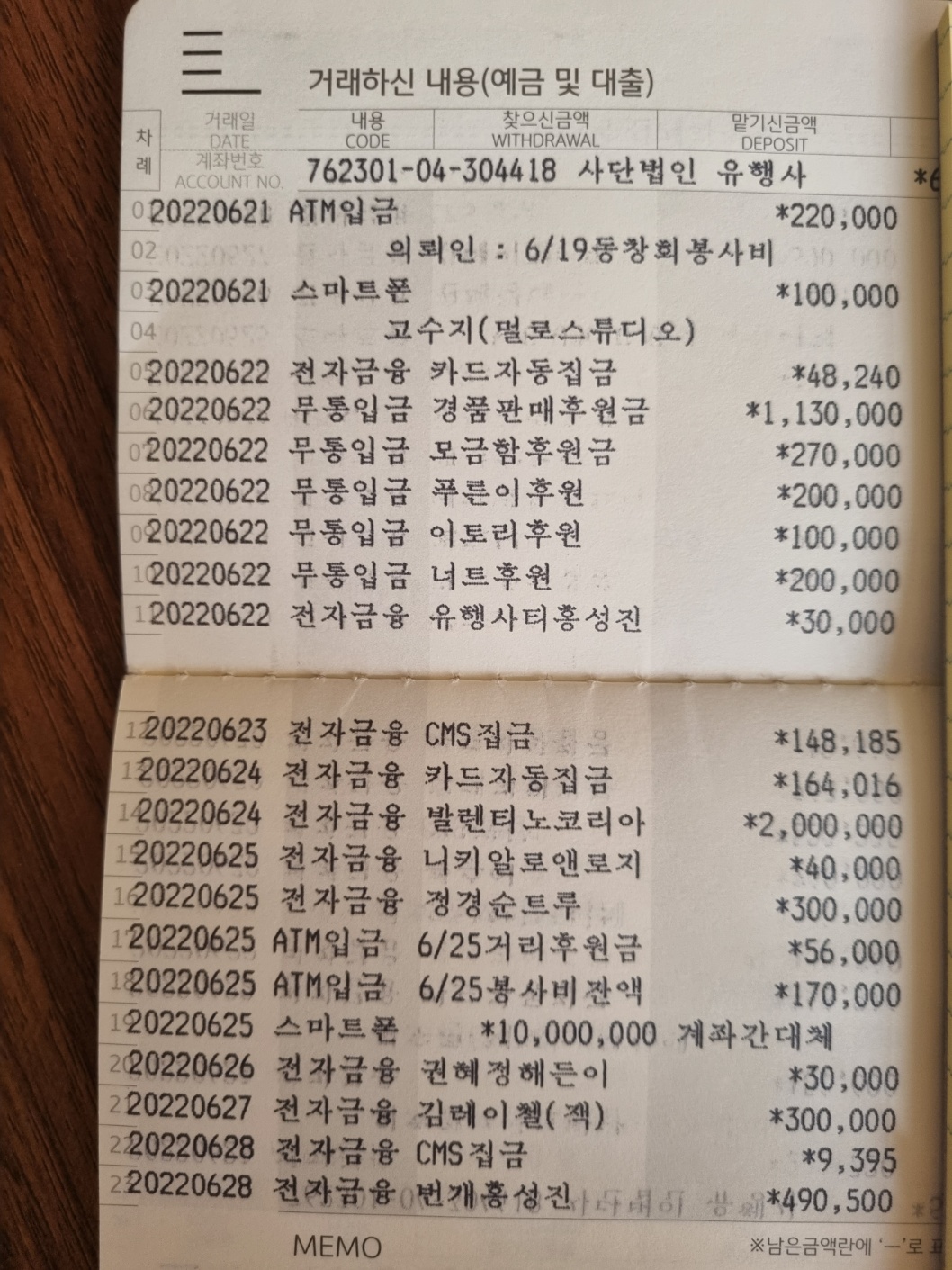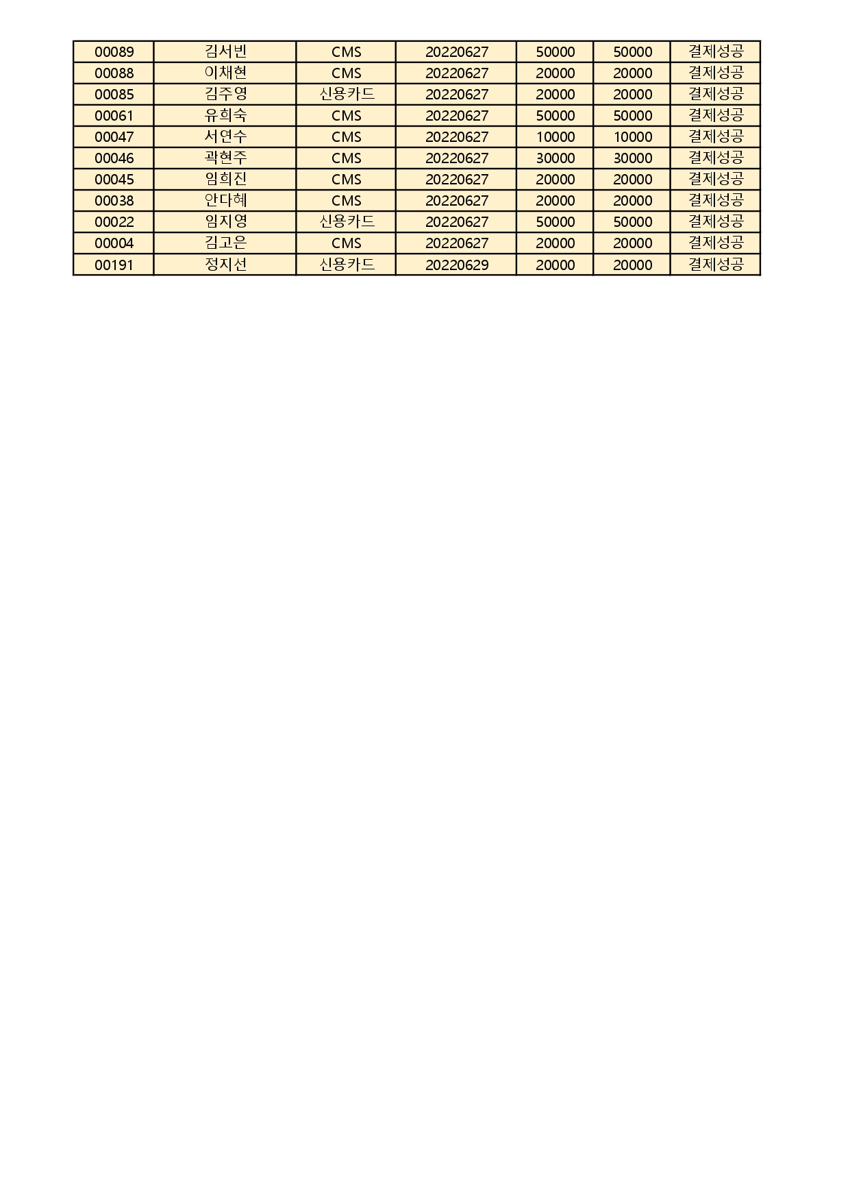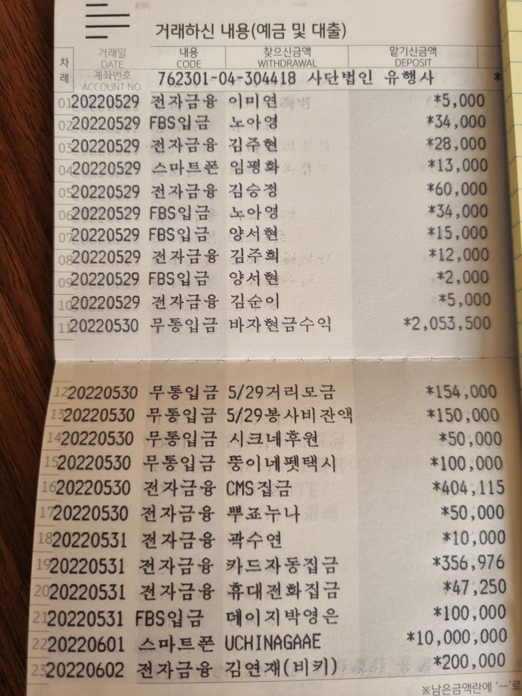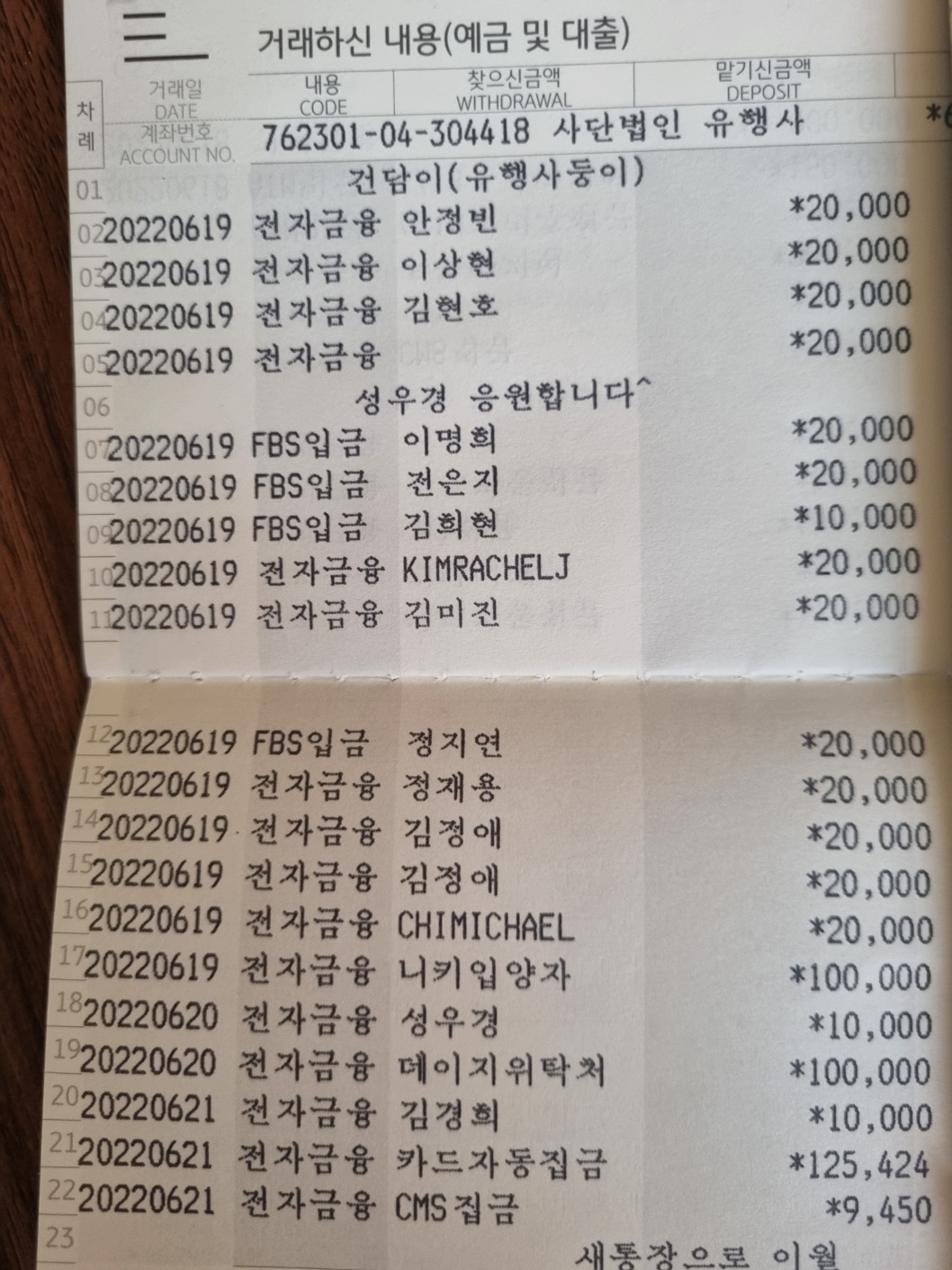 2022.6 해피나눔 입금내역 : 일부 당월수납 = 0은 익월 이후 수납됩니다.