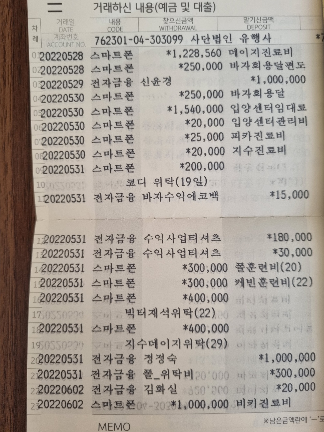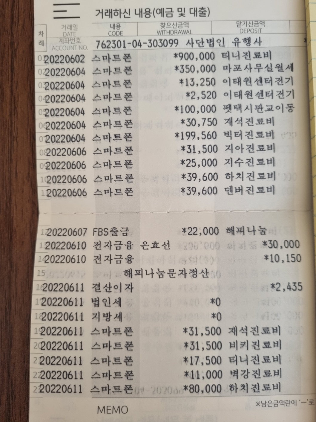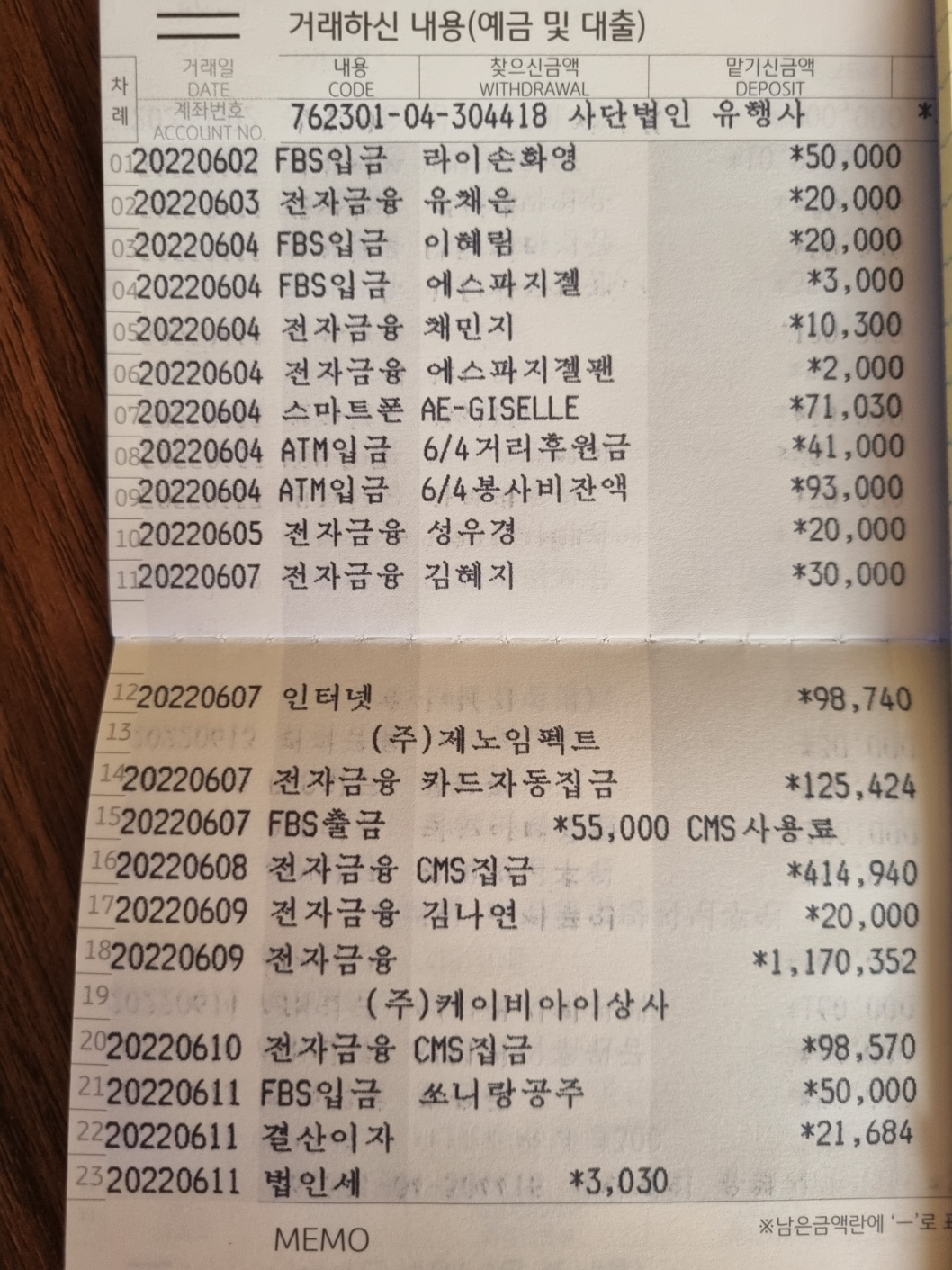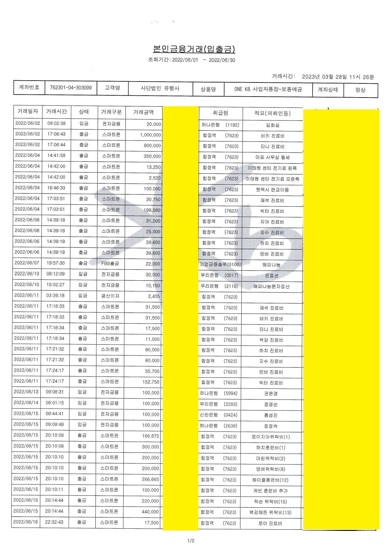 2022.6 해피나눔 입금내역 : 일부 당월수납 = 0은 익월 이후 수납됩니다.