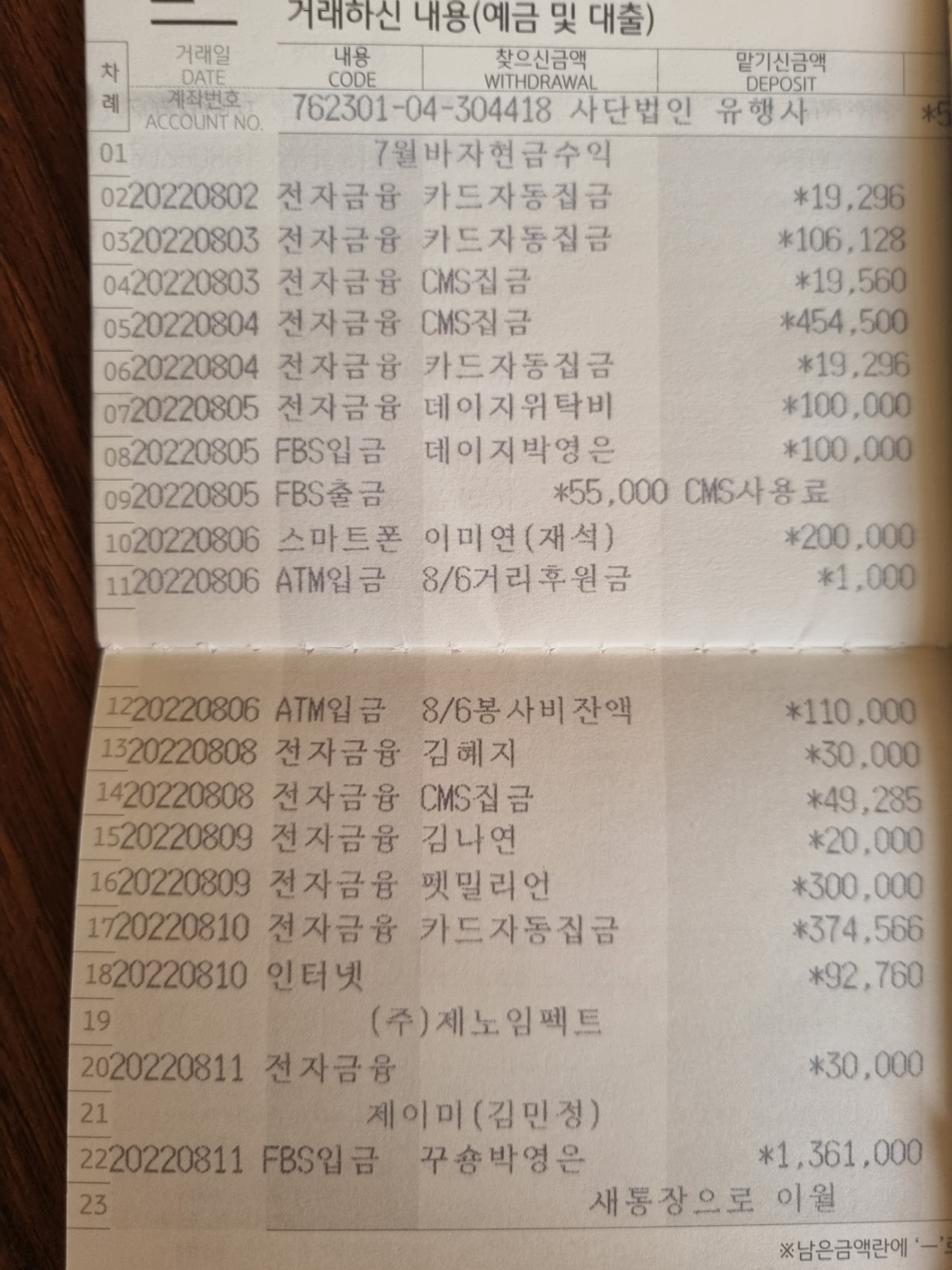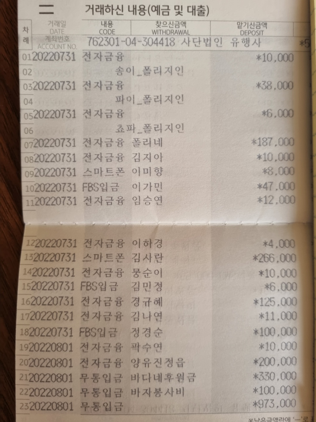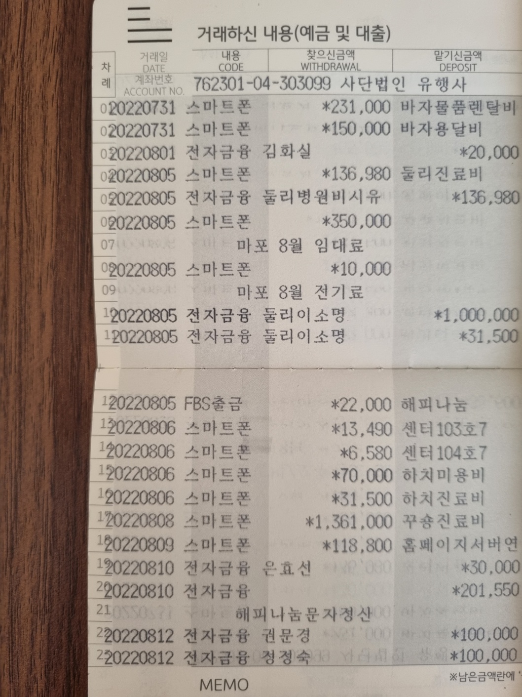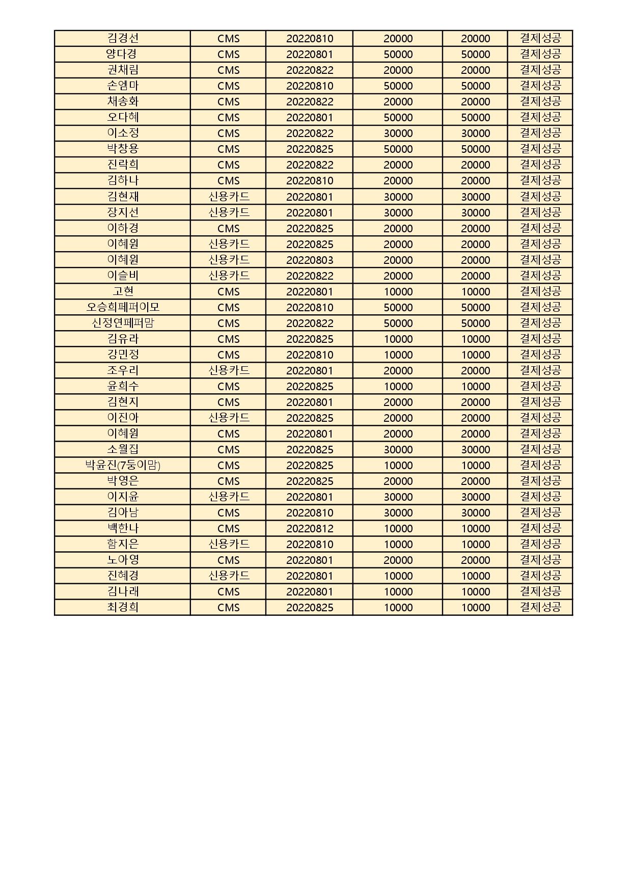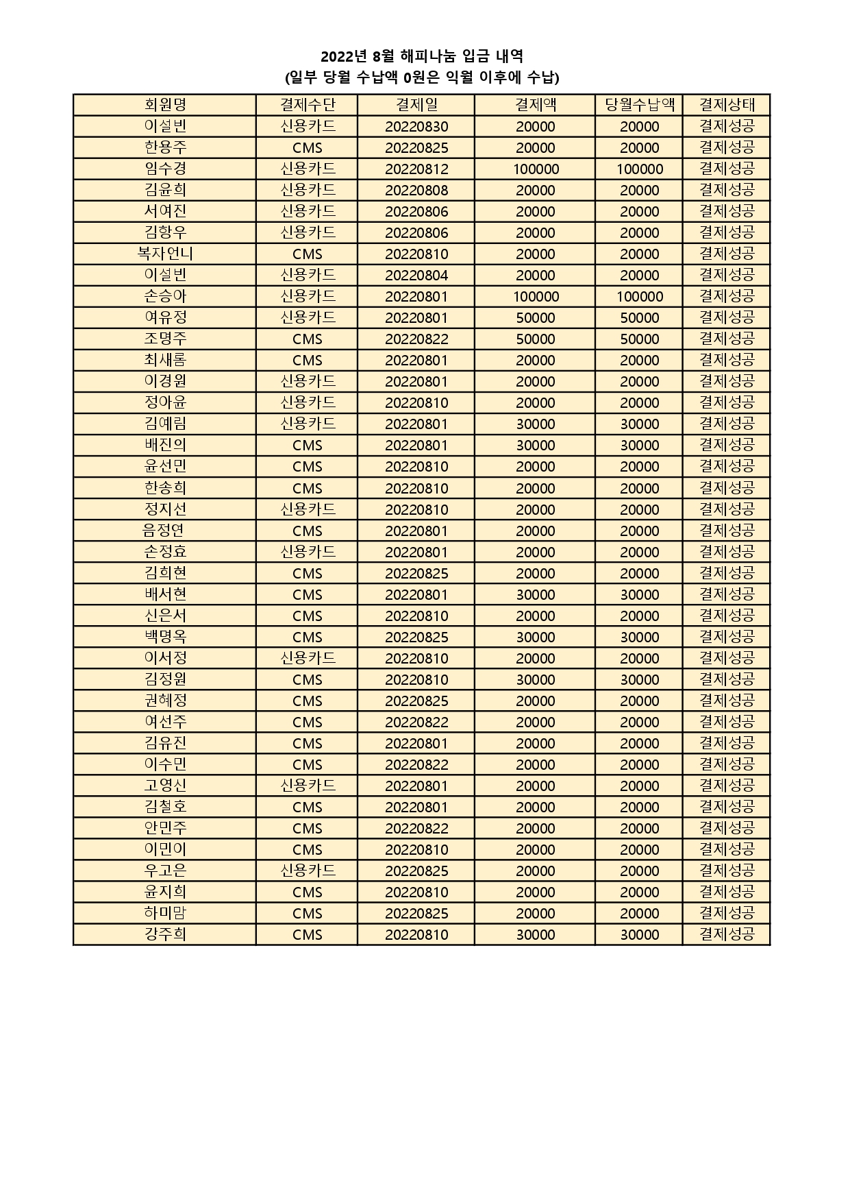 2022.8 해피나눔 입금내역 : 일부 당월수납 = 0은 익월 이후 수납됩니다.