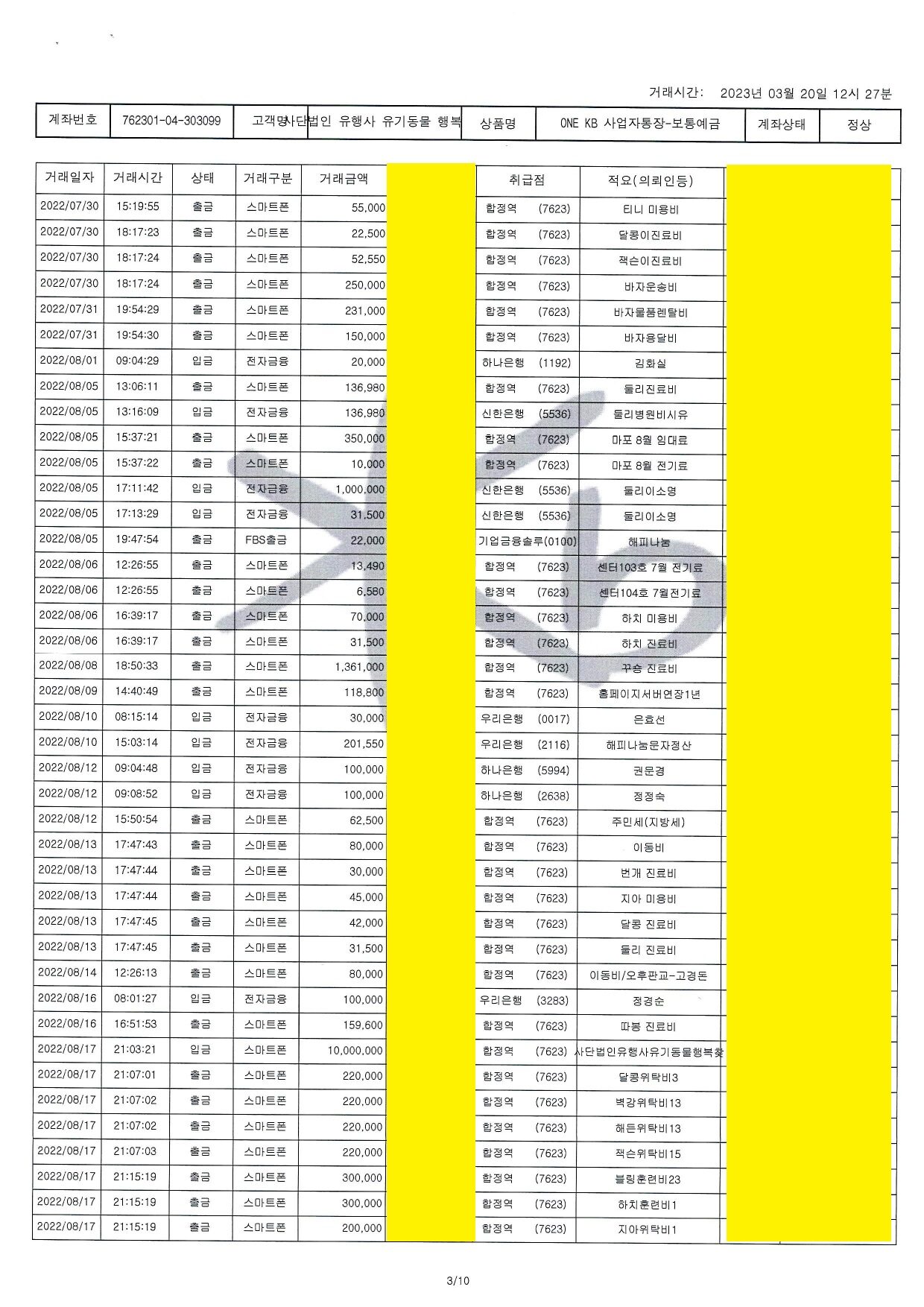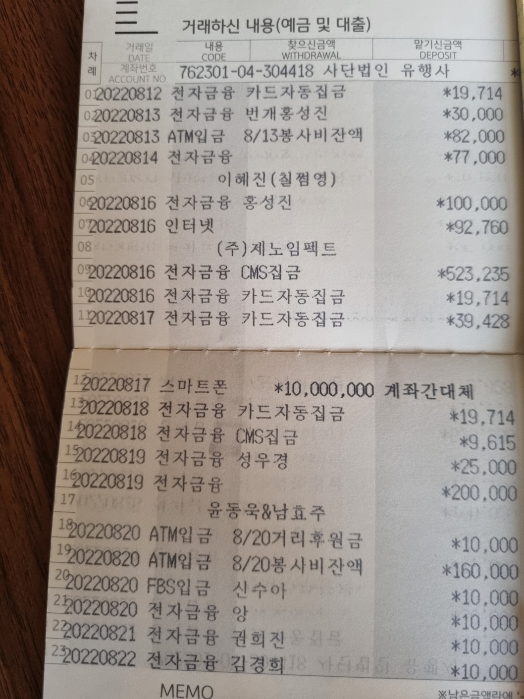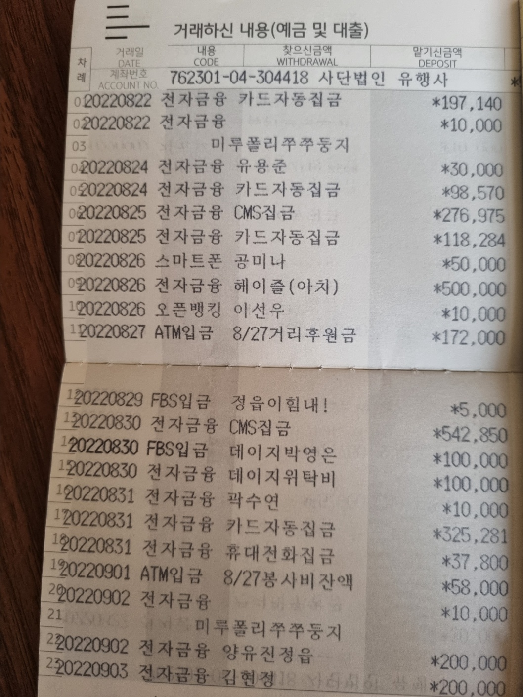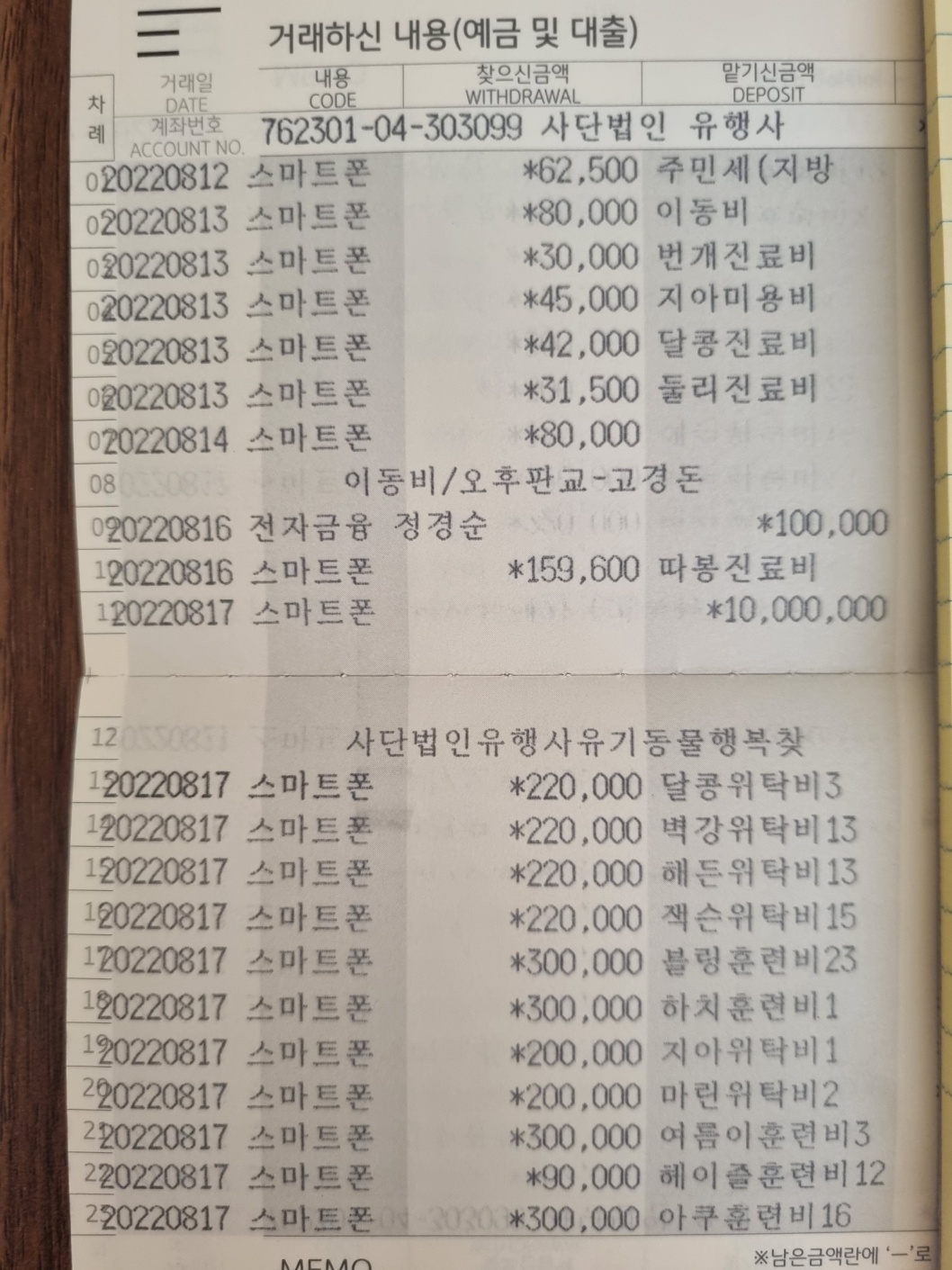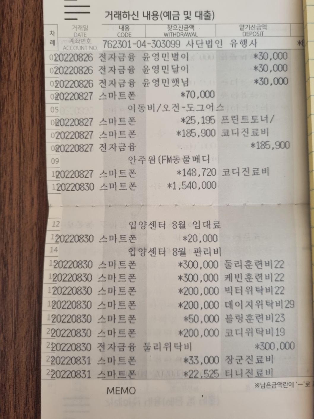 2022.8 해피나눔 입금내역 : 일부 당월수납 = 0은 익월 이후 수납됩니다.