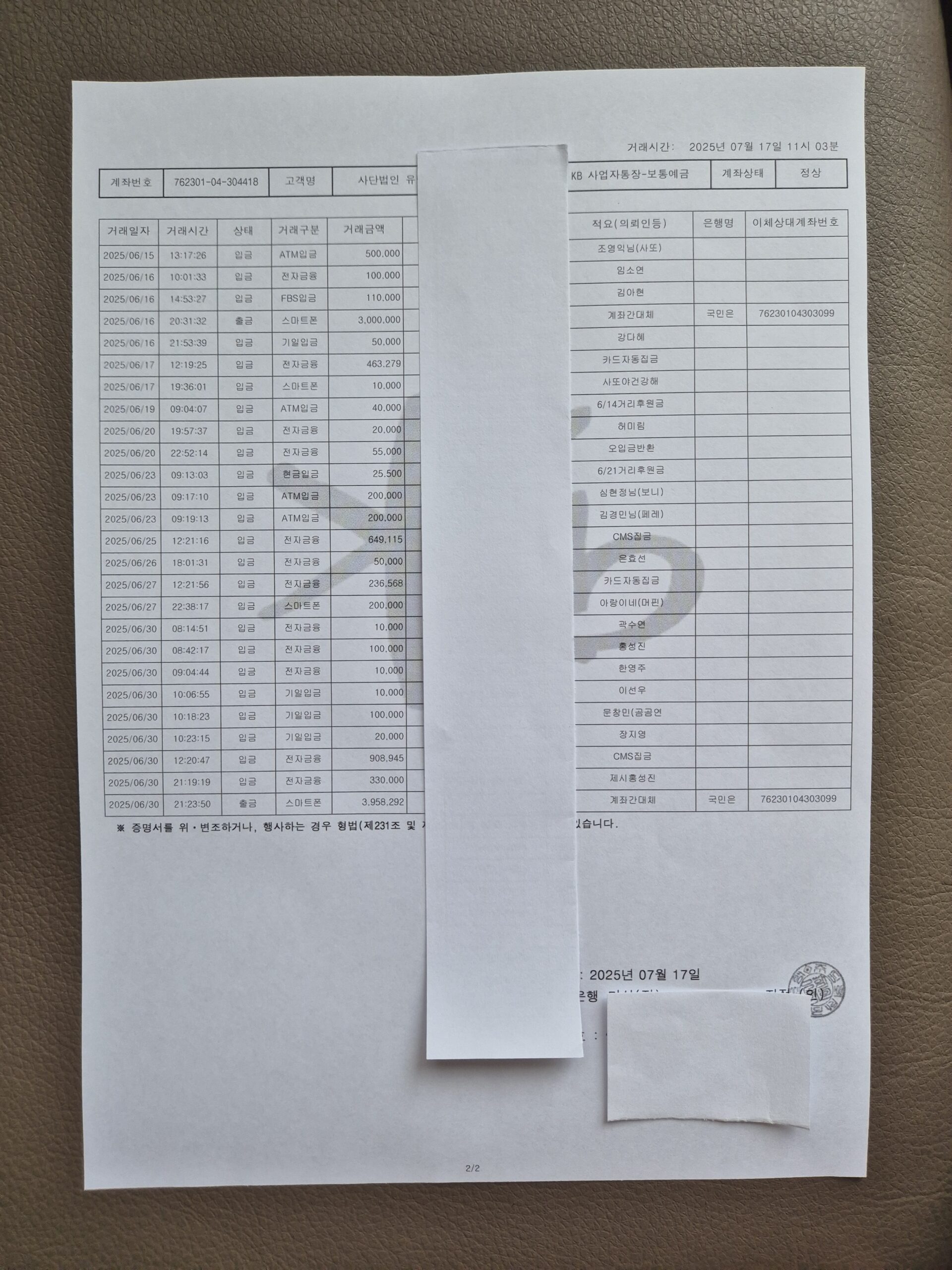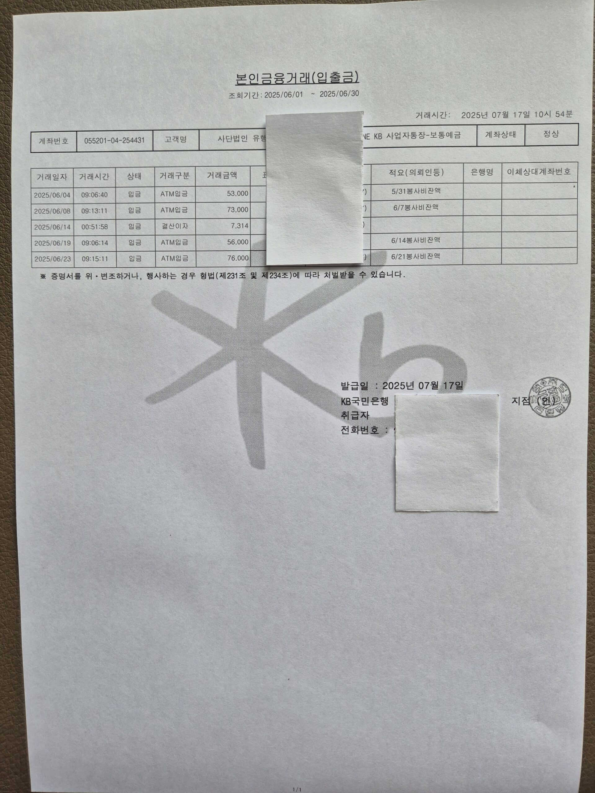 2025년 7월 살림보고 및 회계 (통장내역)