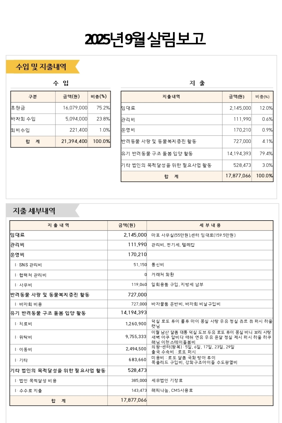2025년 9월 살림보고 및 회계 (통장내역)