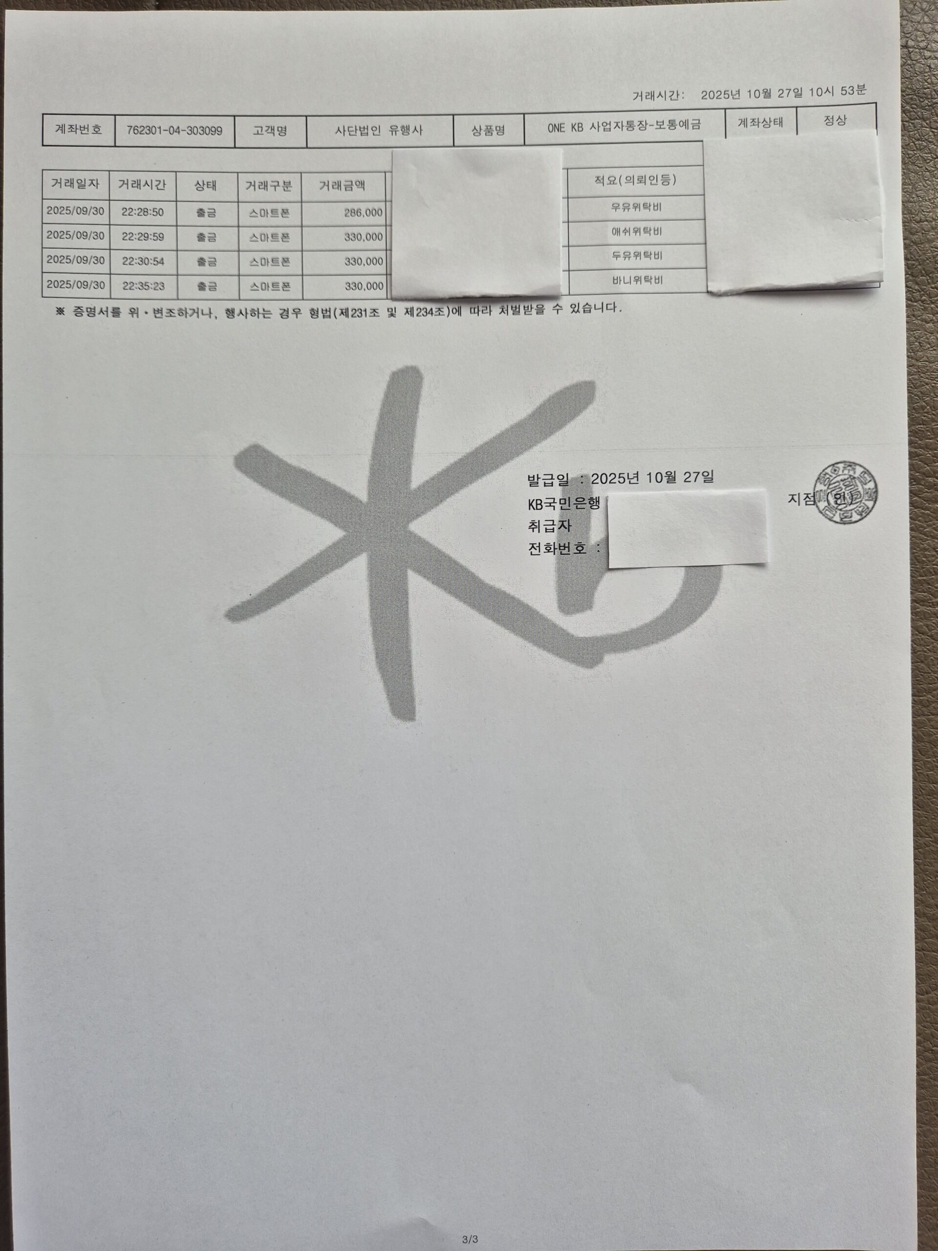2025년 10월 살림보고 및 회계 (통장내역)